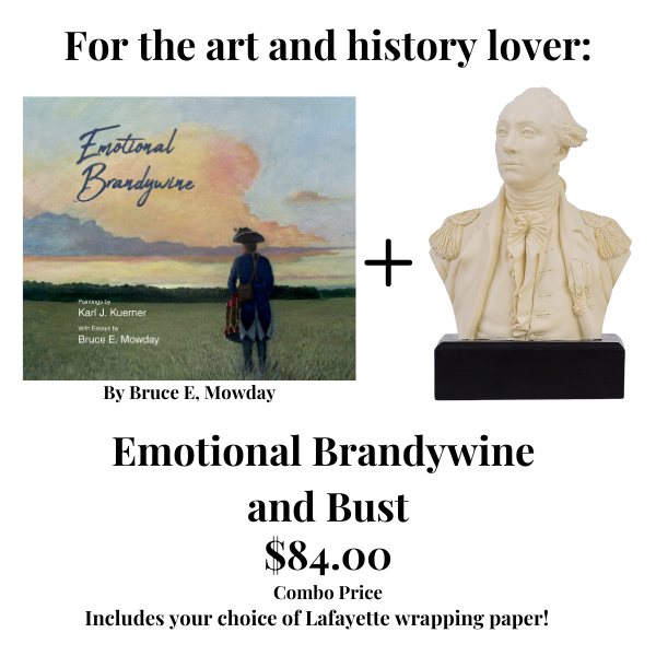 This gift package includes one copy of Emotional Brandywine and one Lafayette souvenir bust. Everything is wrapped in the Lafayette wrapping paper of your choice. Order today.