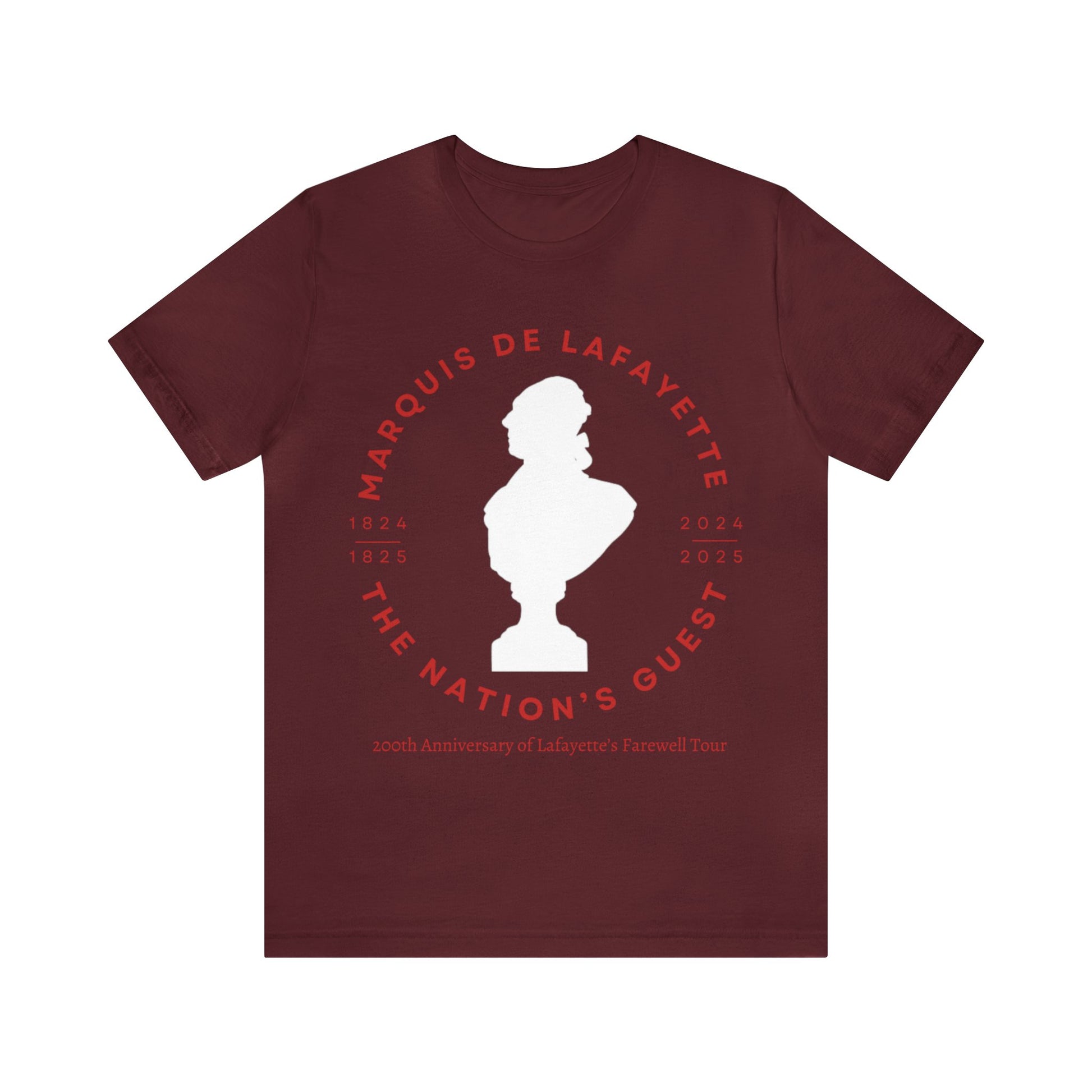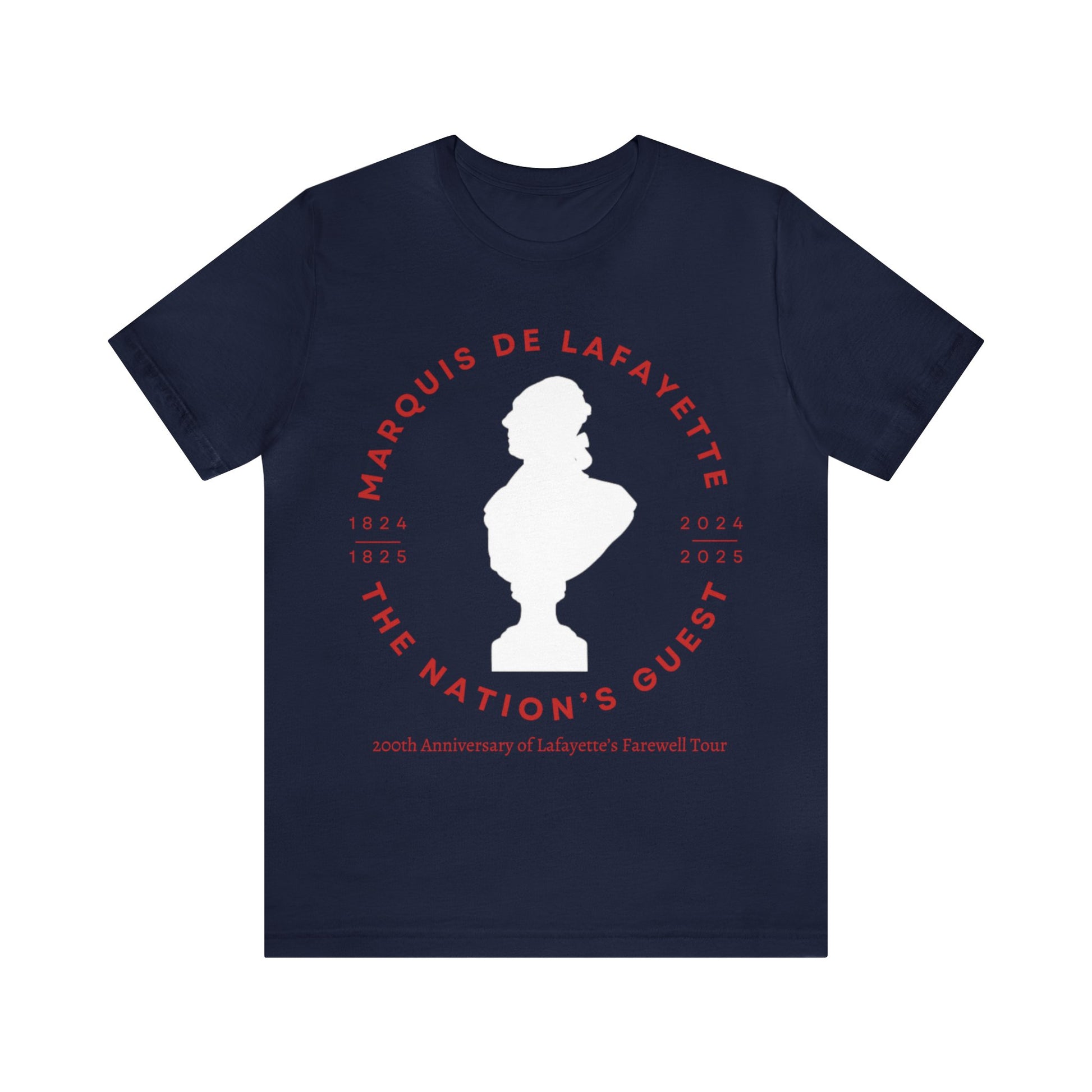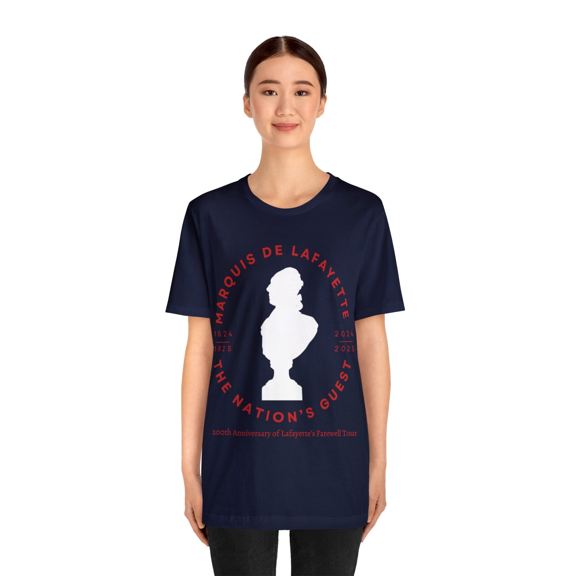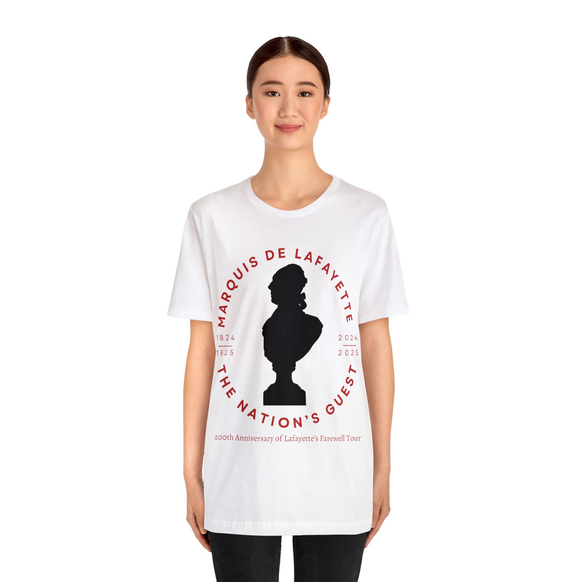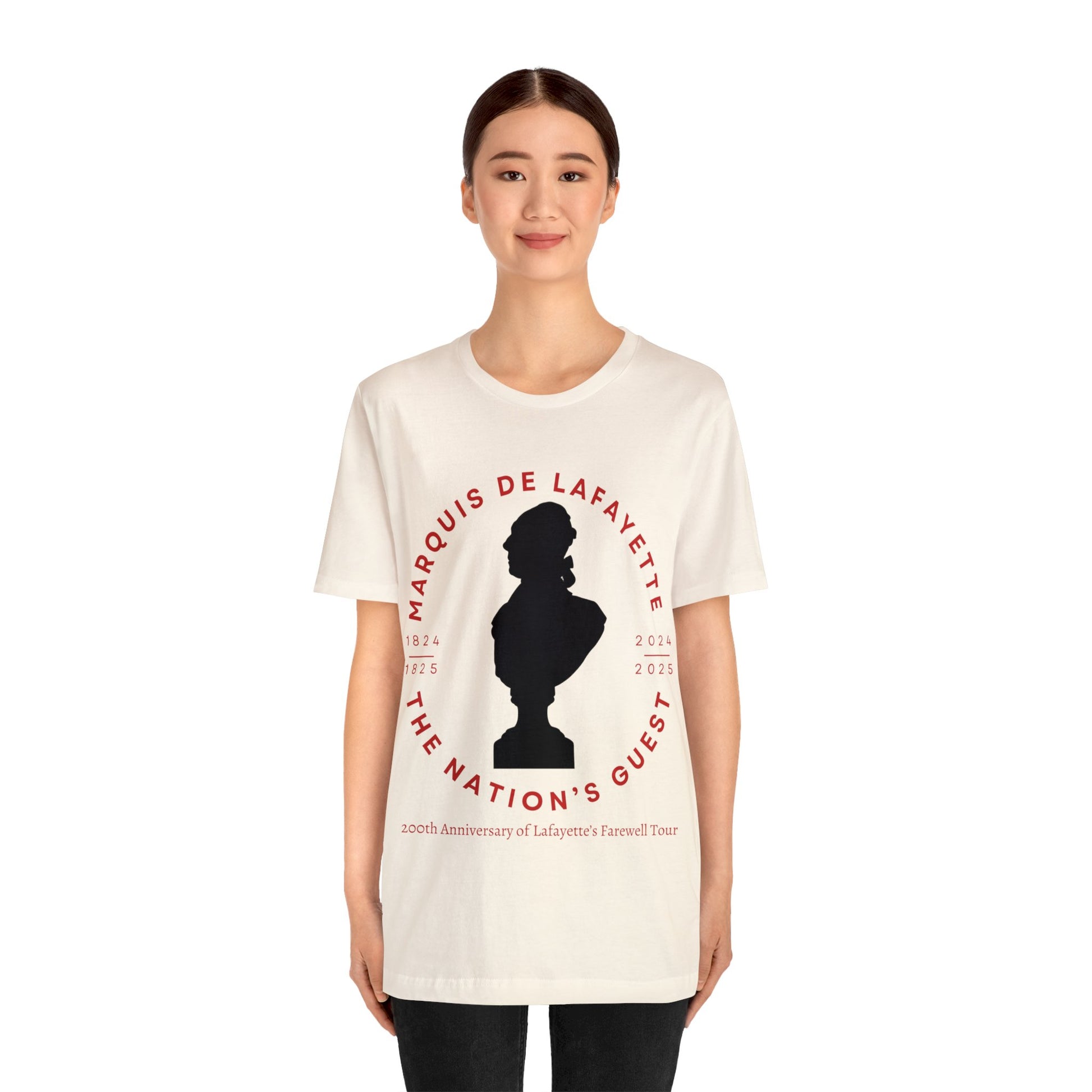 Lafayette Bust Silhouette Bicentennial Farewell Tour T-shirt - Unisex Jersey Short Sleeve - Hero of Two Worlds, Marquis de Lafayette