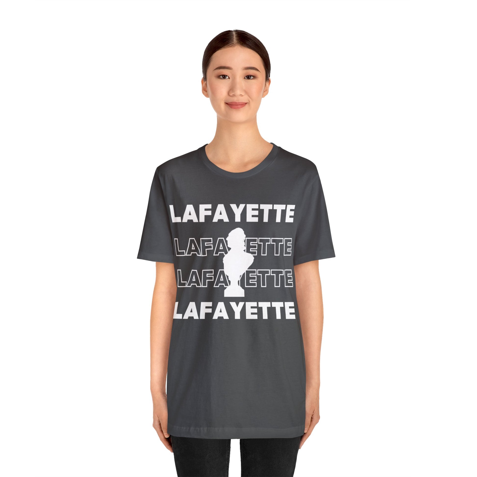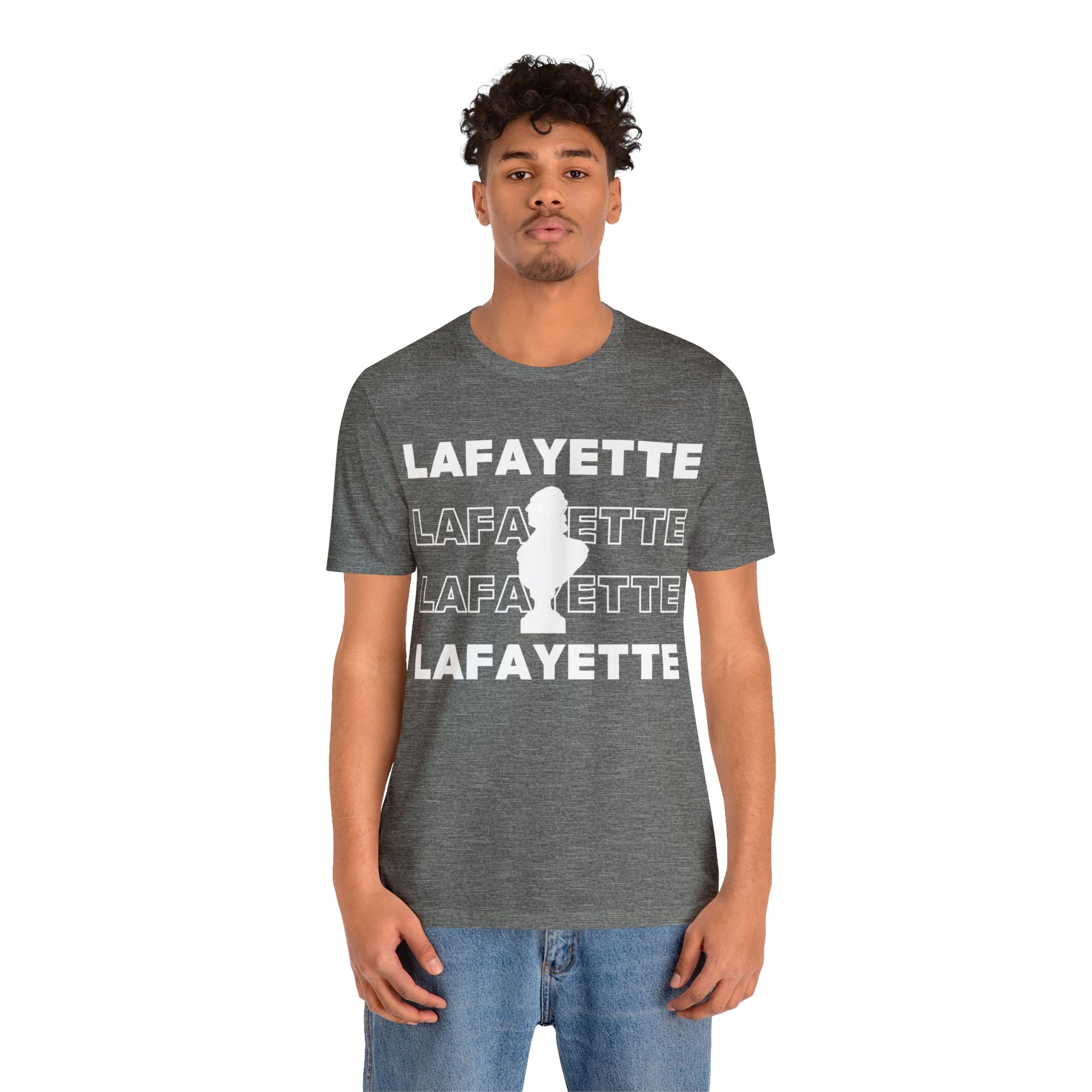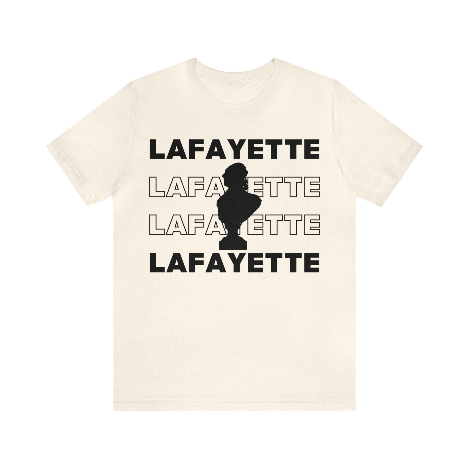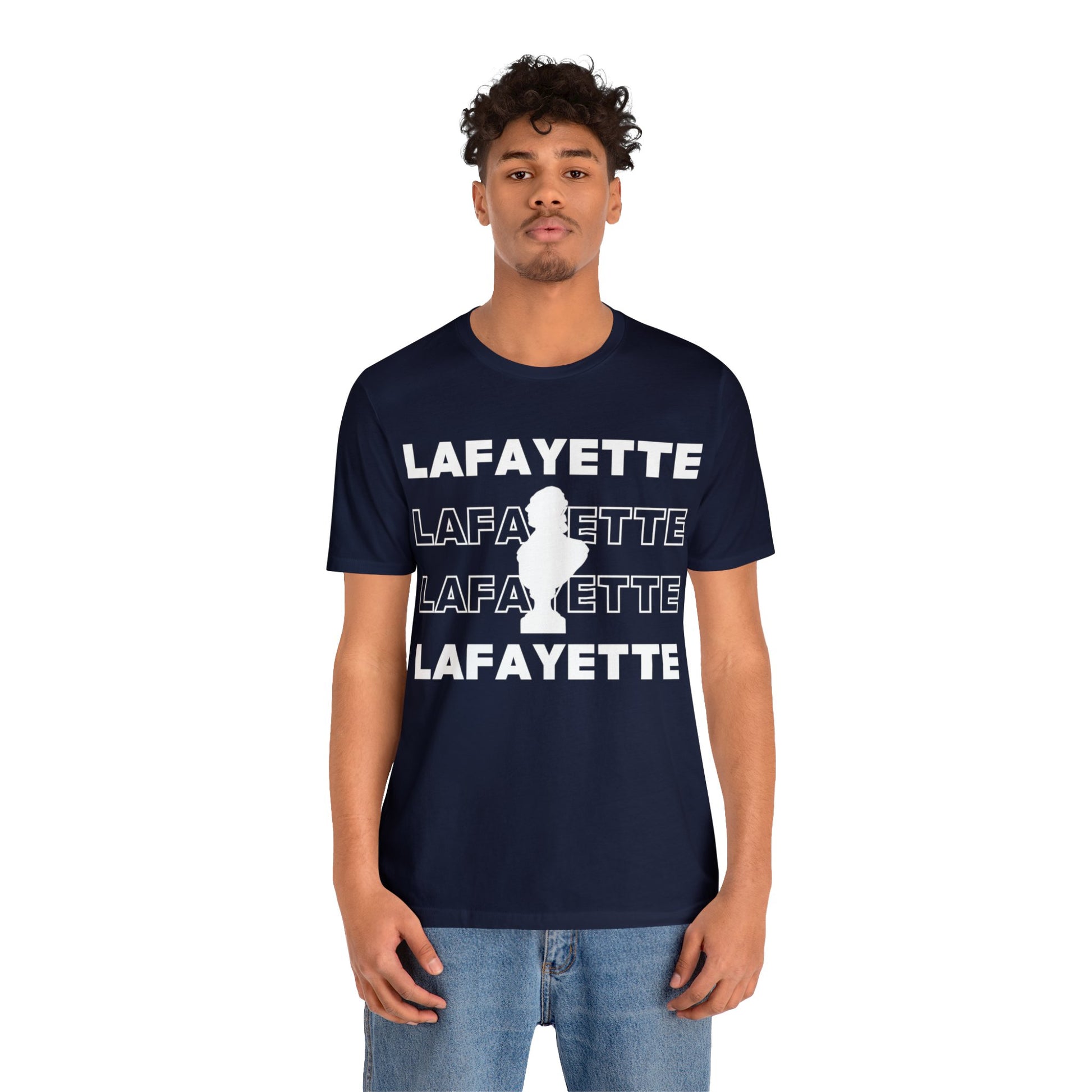 Now you can wear Lafayette anywhere! Perfect for the Lafayette fan or history buff in your life. This shirt features Lafayette's bust profile and large graphic letters. Check out all of the color options. Get a shirt for everyone. Great for gifts.
