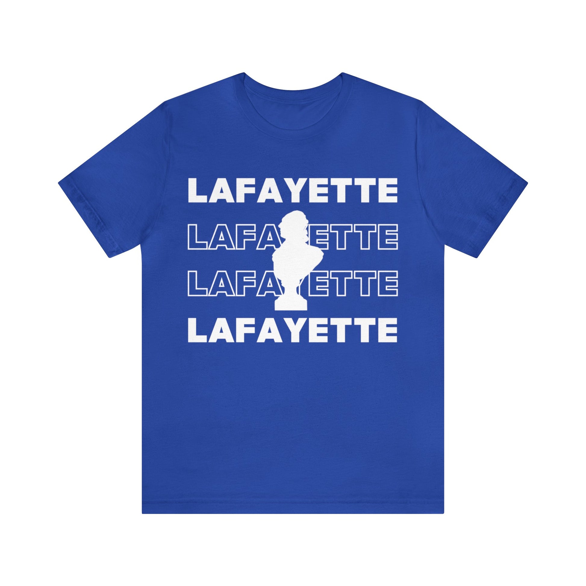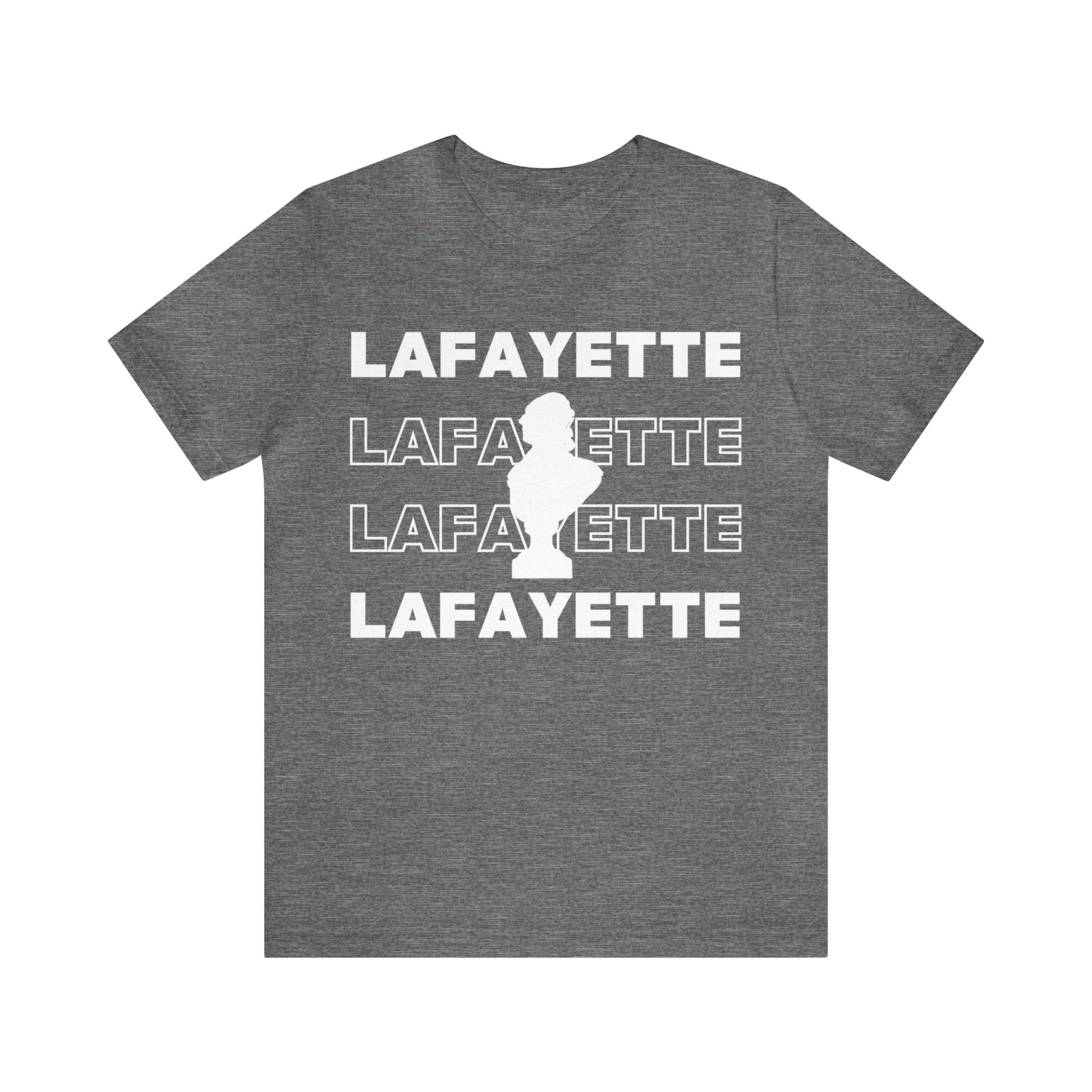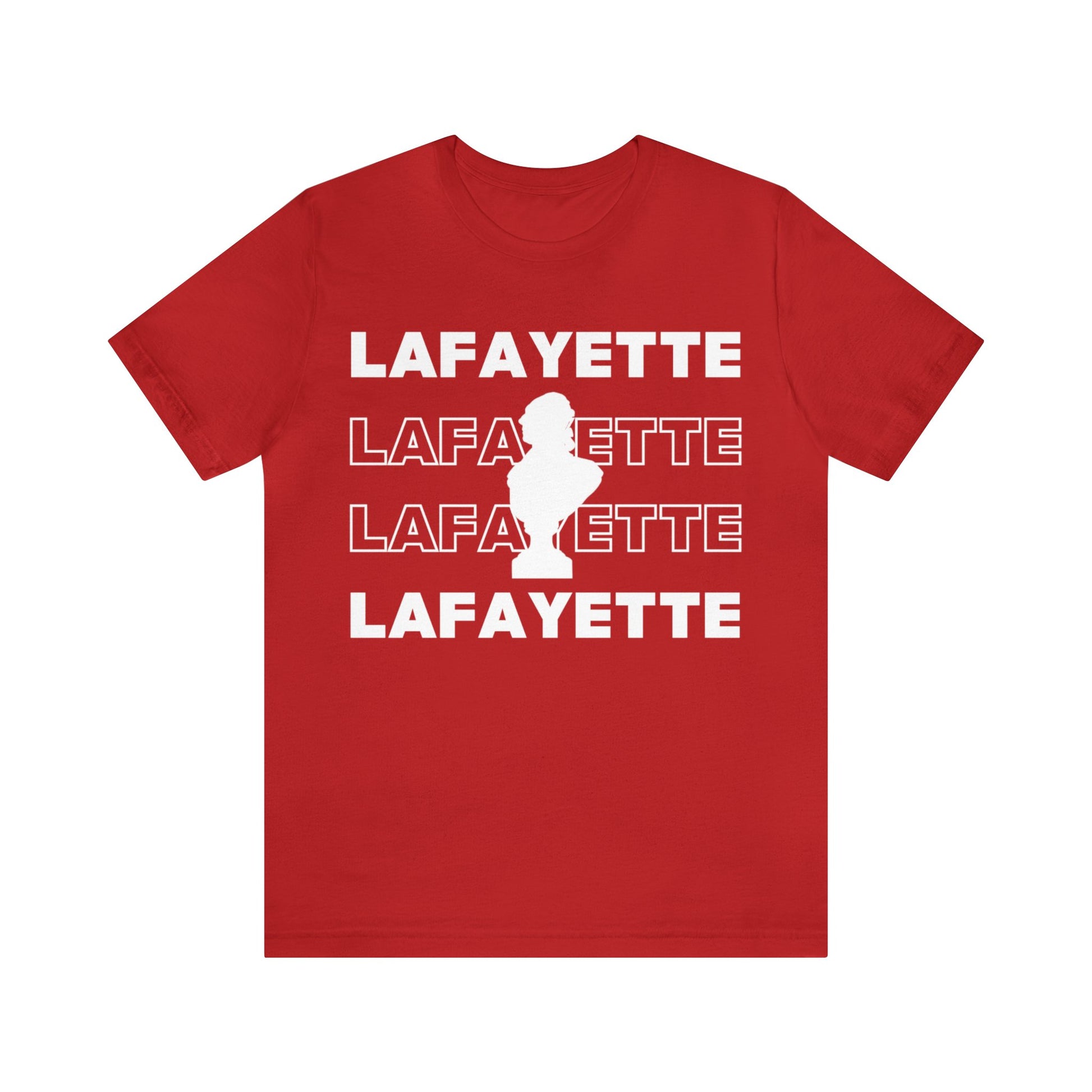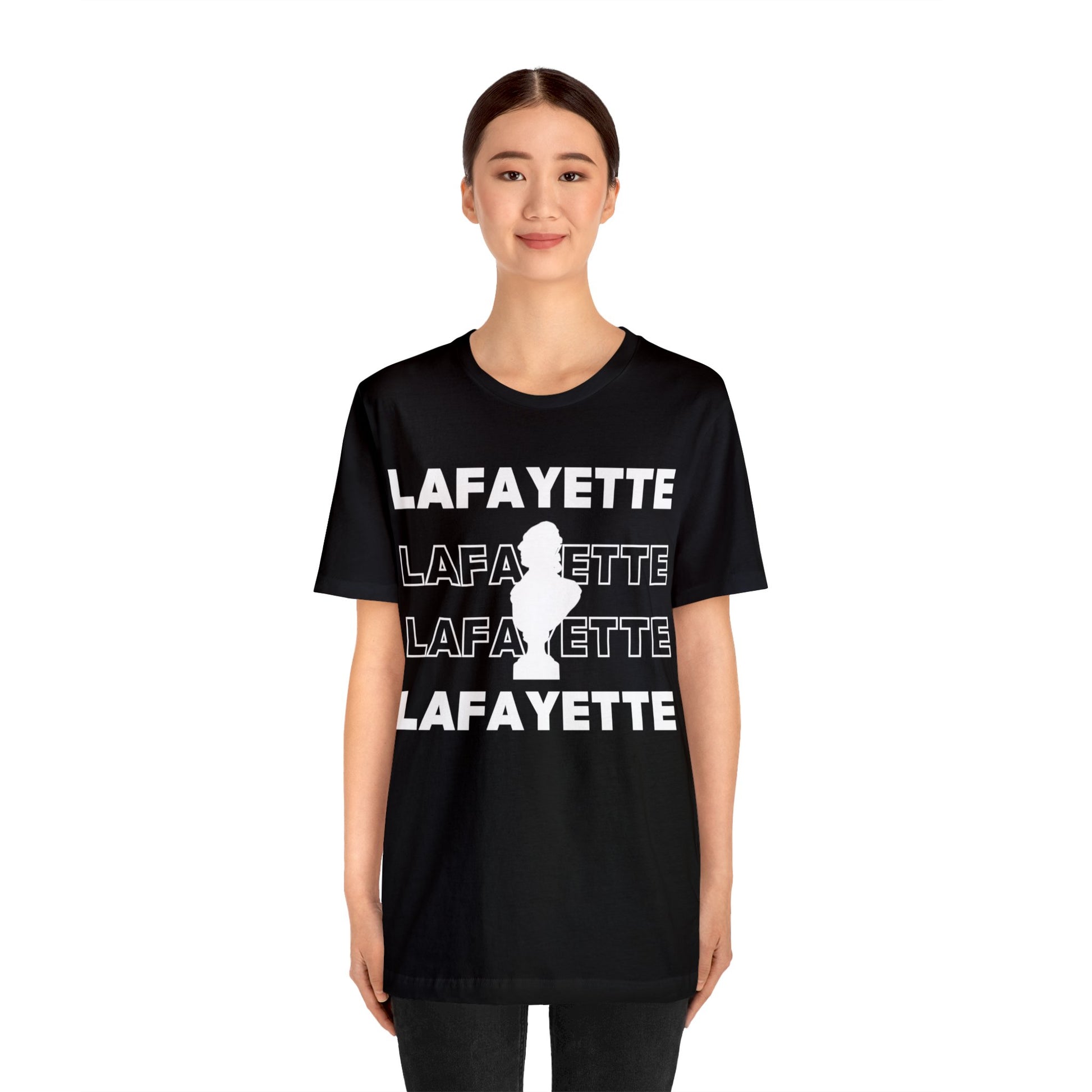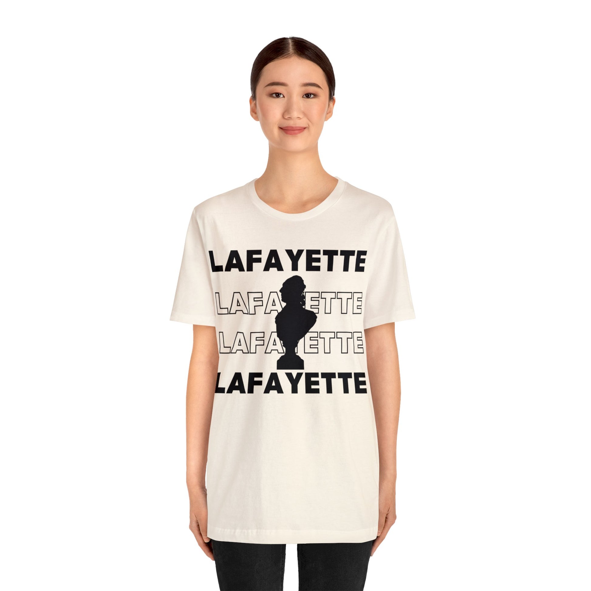 Now you can wear Lafayette anywhere! Perfect for the Lafayette fan or history buff in your life. This shirt features Lafayette's bust profile and large graphic letters. Check out all of the color options. Get a shirt for everyone. Great for gifts.