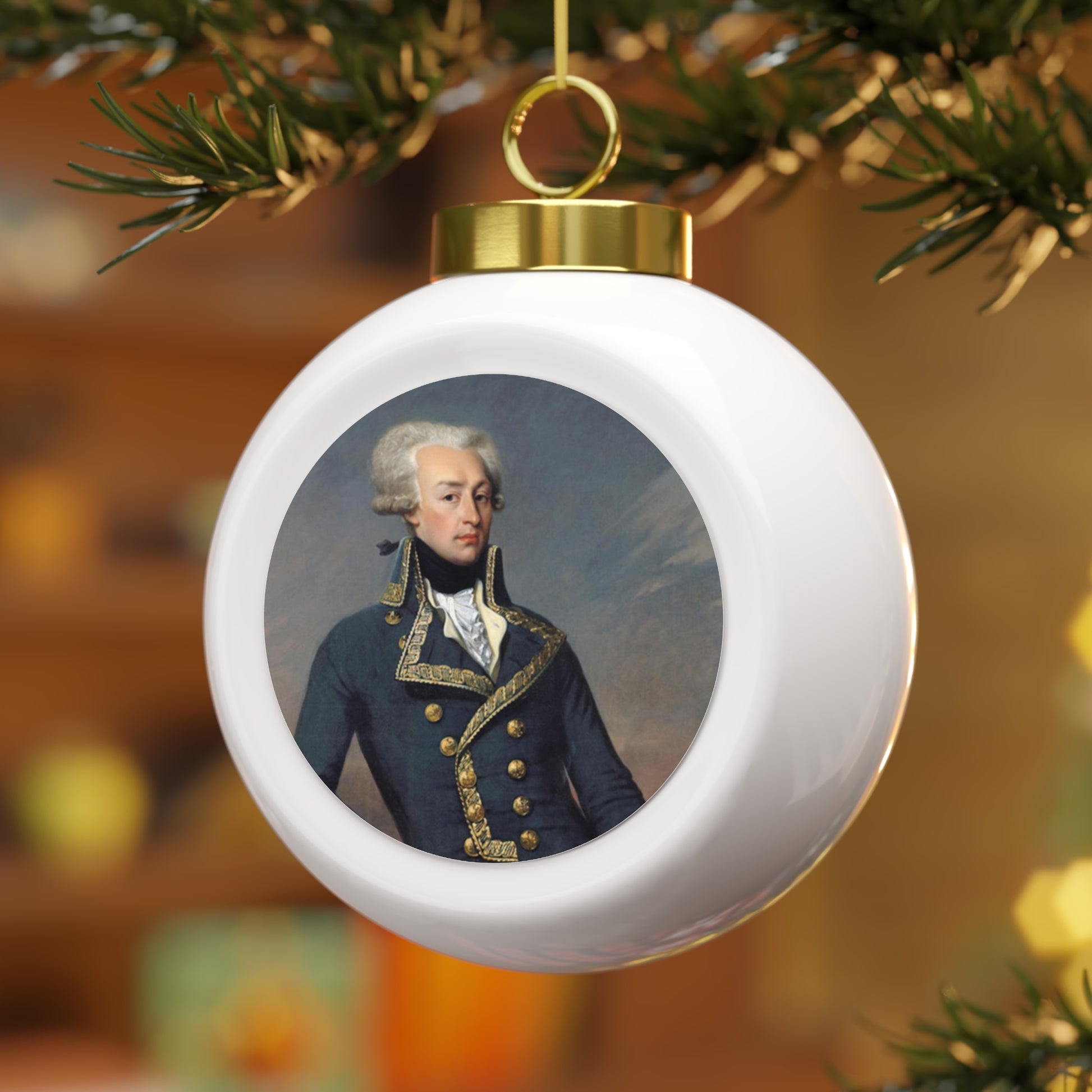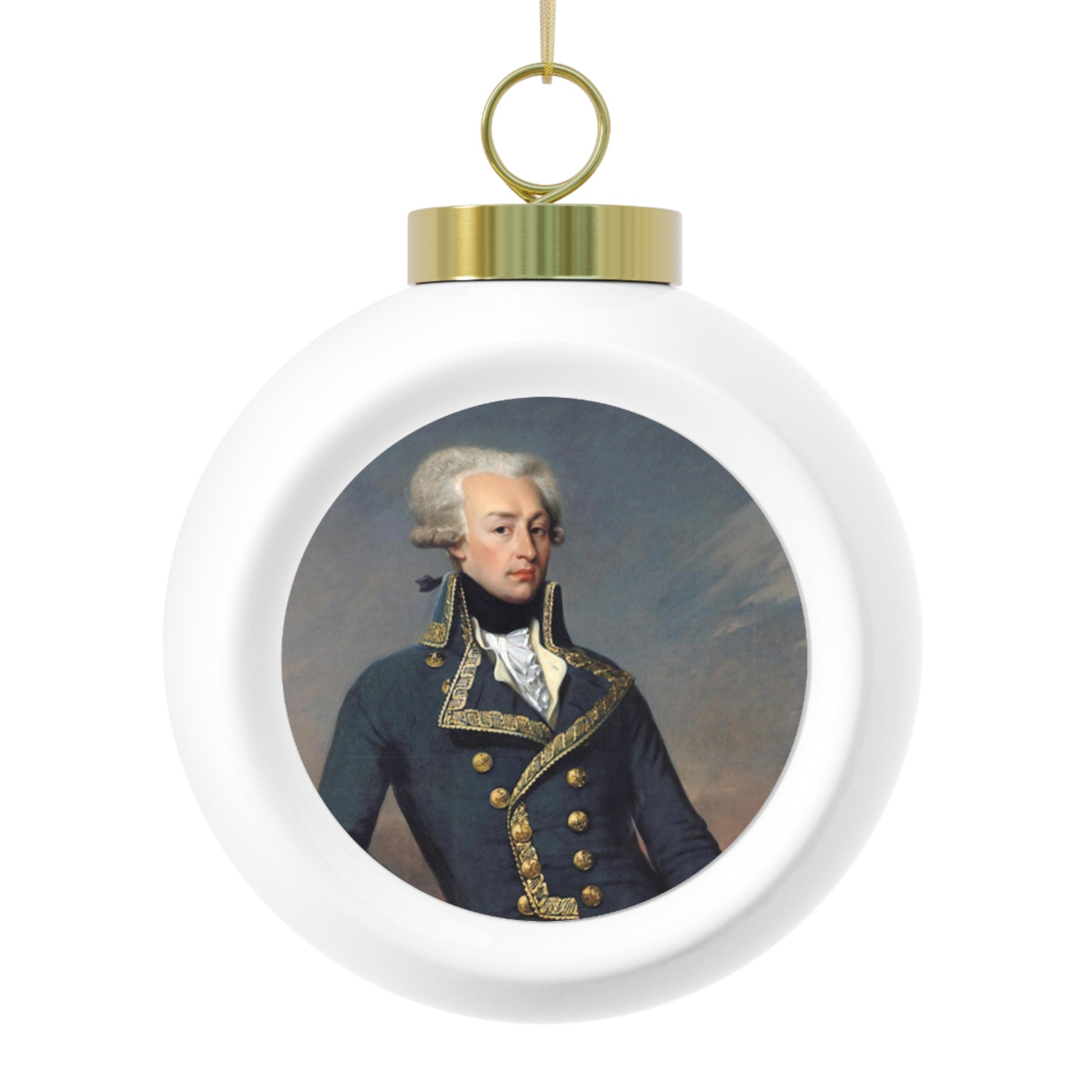 Marquis de Lafayette Ornament. What a great way to decorate for the holidays! This 3" Christmas ball ornament featuring the Marquis de Lafayette is a perfect way for you to get creative this season with your gifting or your decorating.