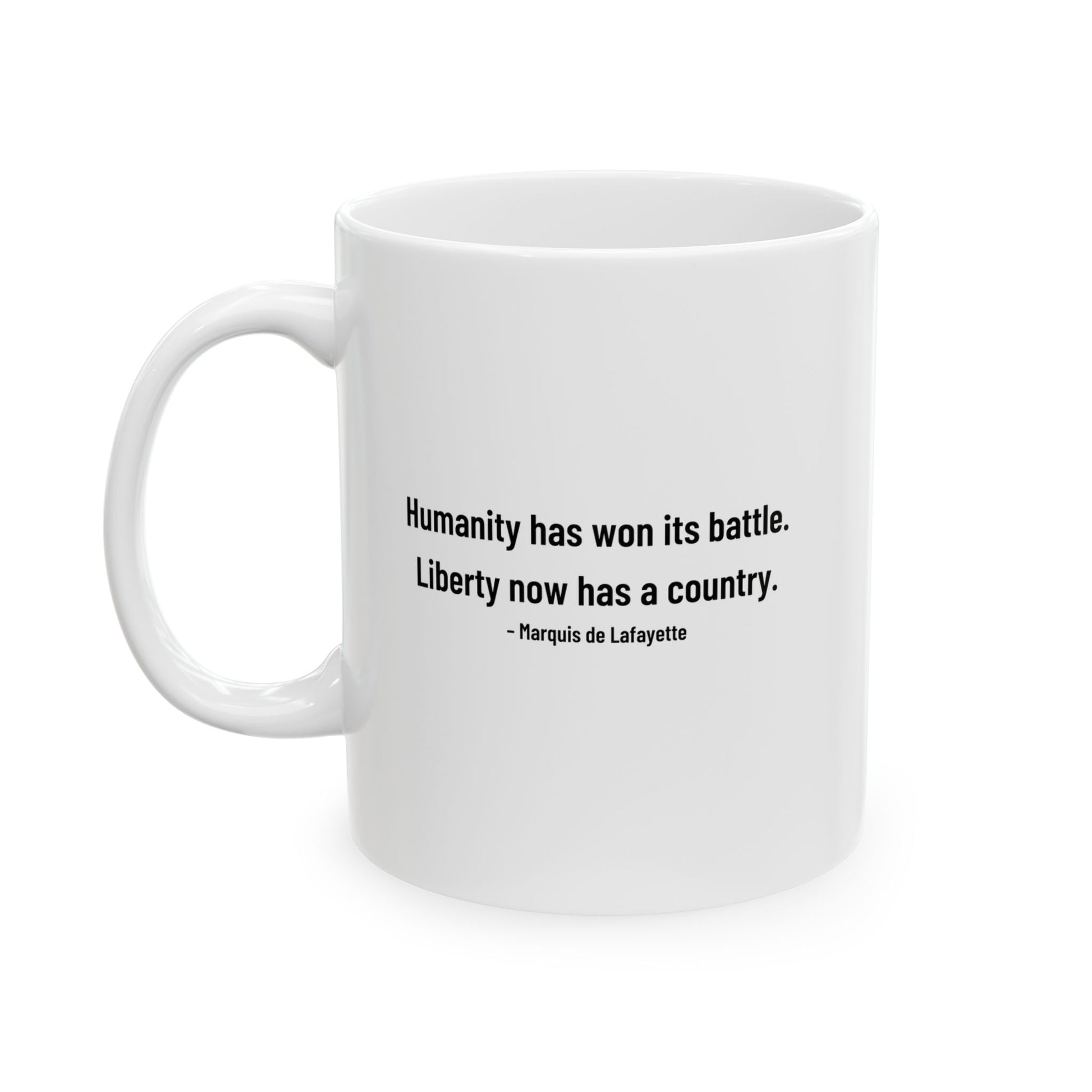 Lafayette Mug - 11oz White Ceramic - Colorful Art Style with Quote
