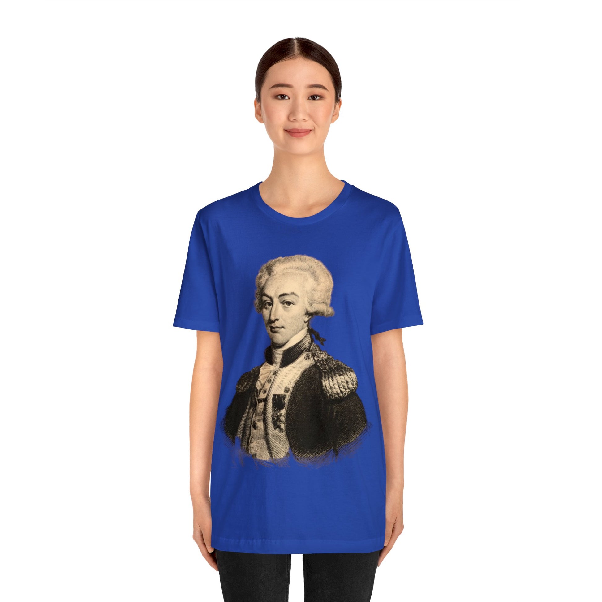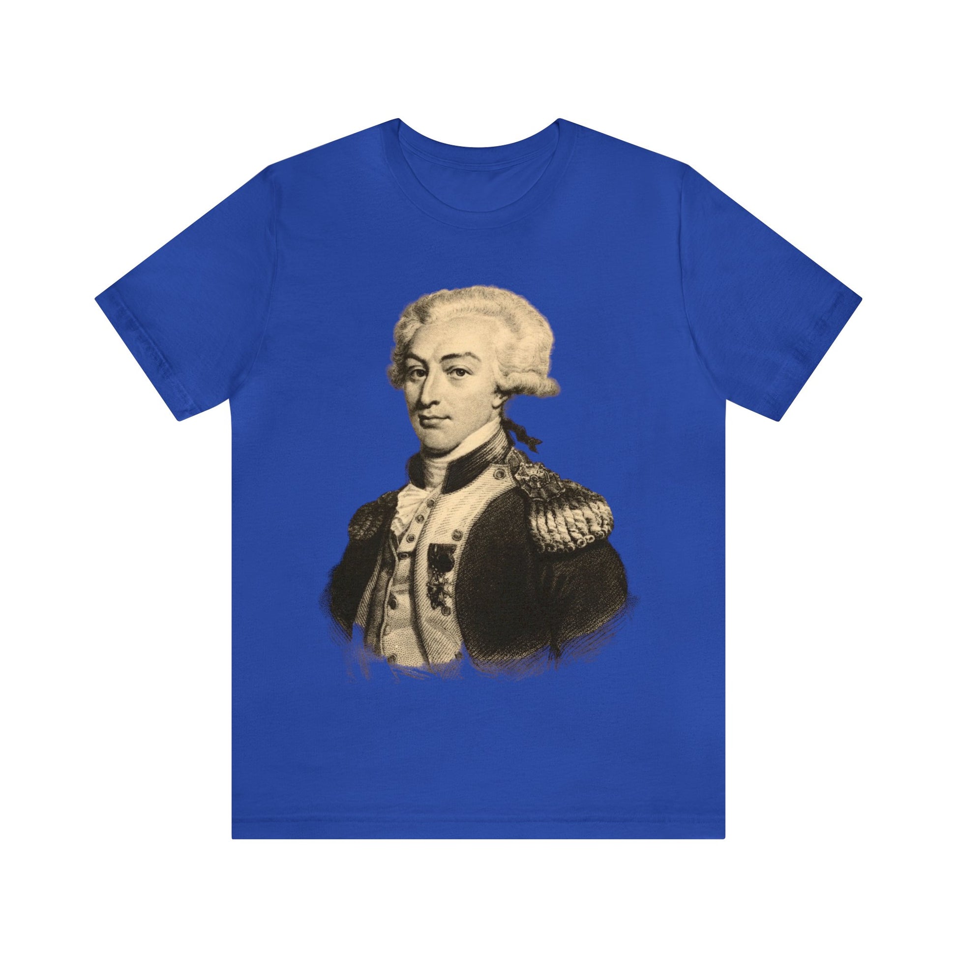Now you can wear Lafayette anywhere! Perfect for the Lafayette fan or history buff in your life. This shirt features Lafayette's portrait and his classic look. Check out all of the color options. Get a shirt for everyone. Great for gifts.
