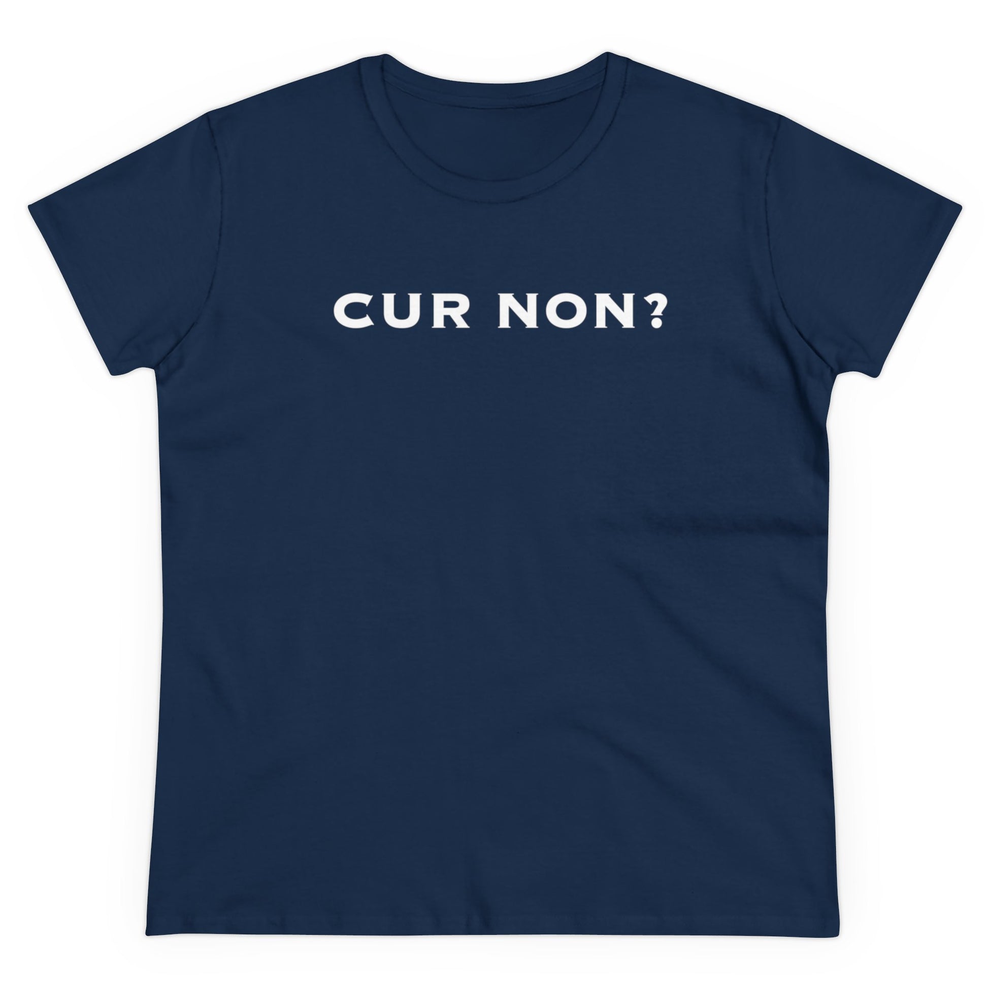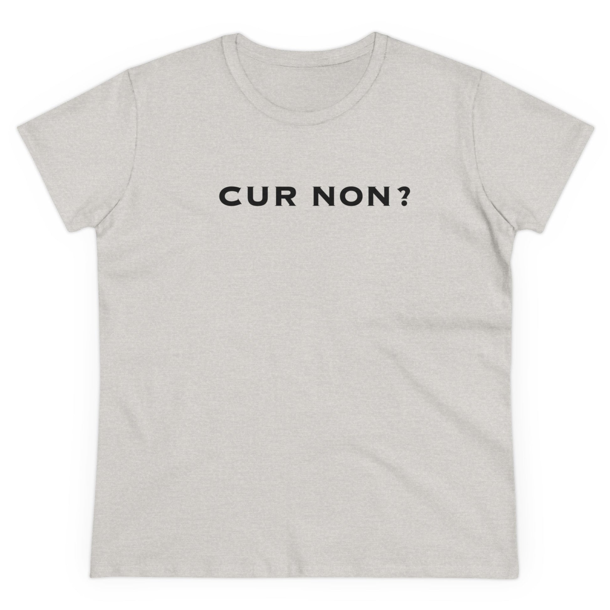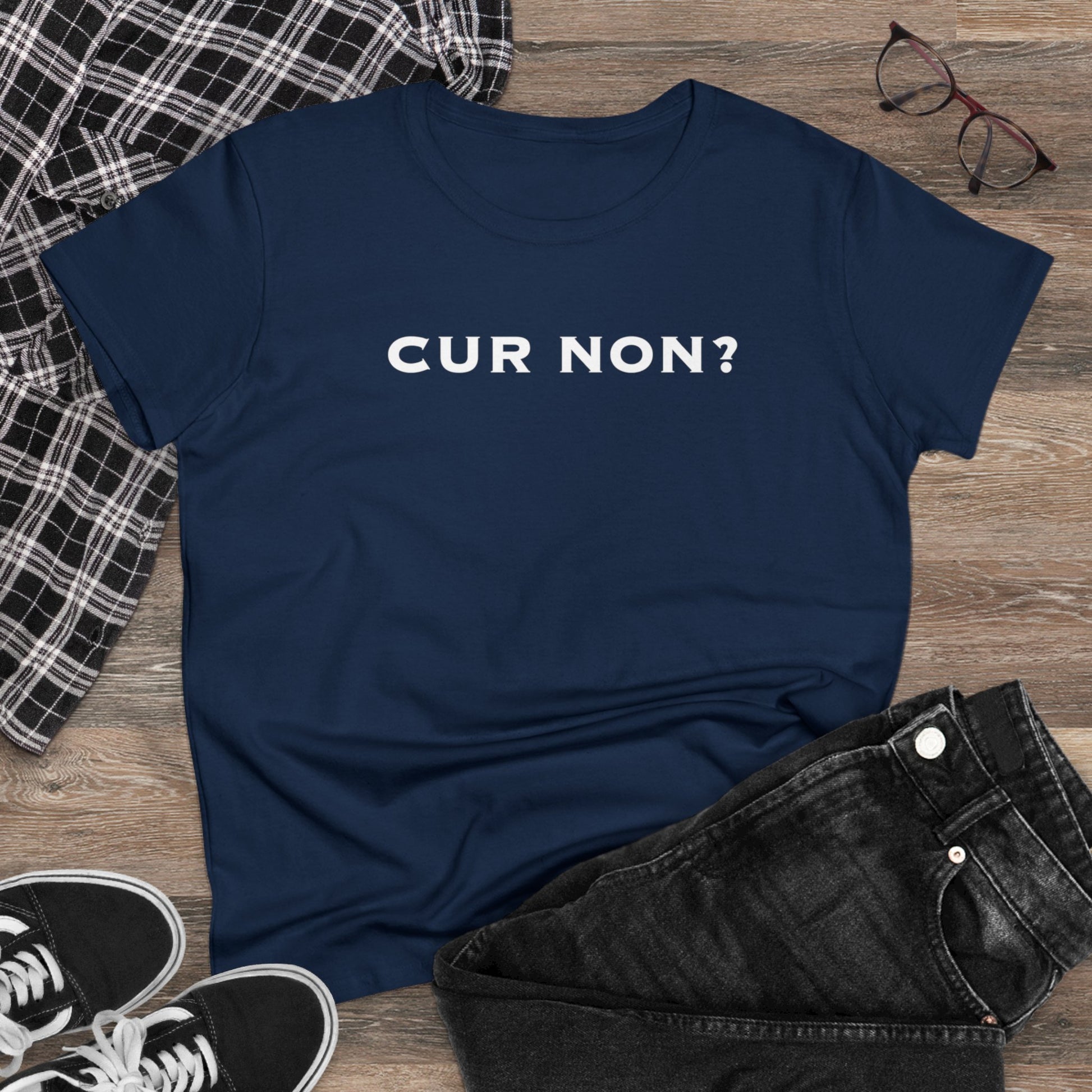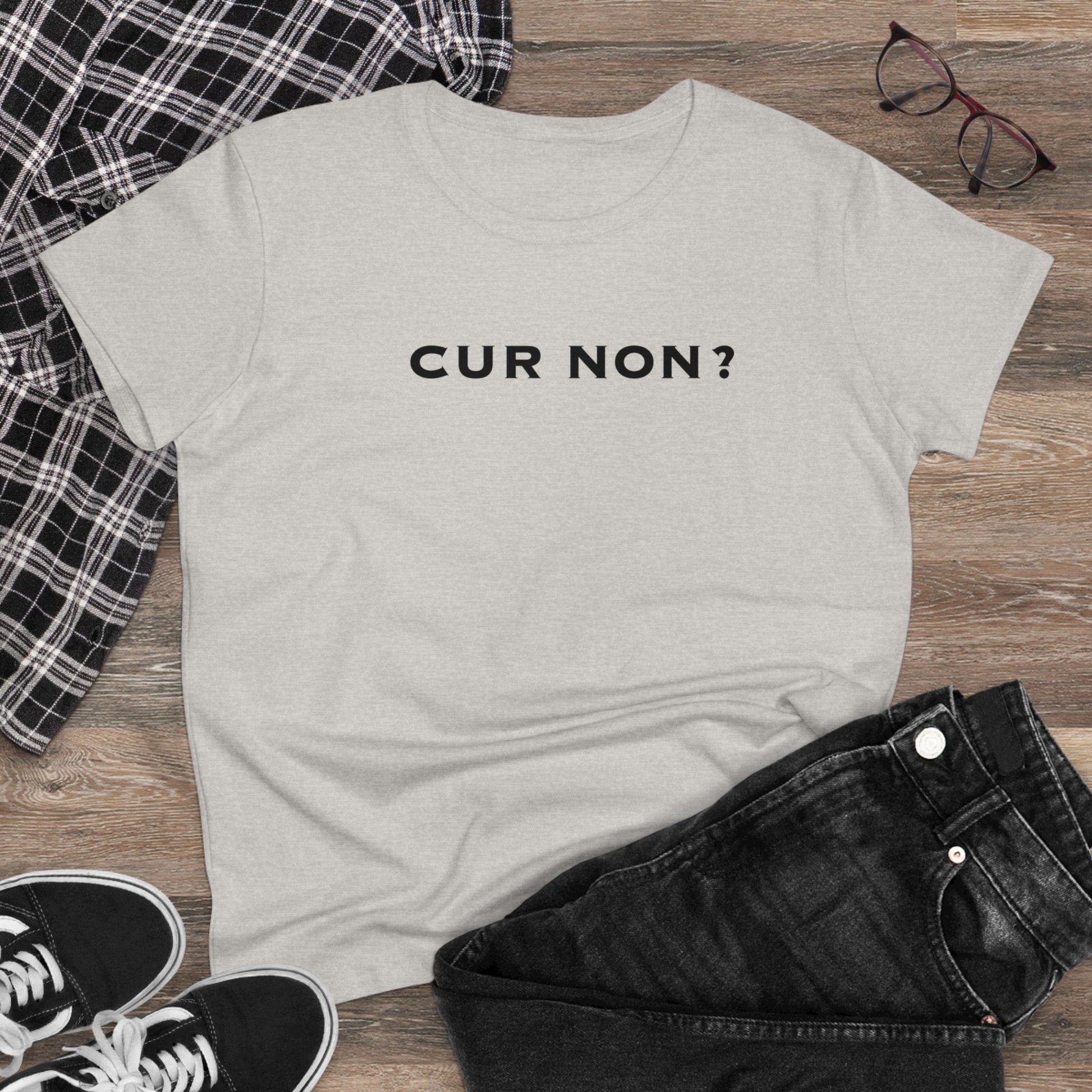 Cur Non means Why Not! This is Lafayette's family motto. Nothing is better than Lafayette's motto on a soft, light cotton, quality t-shirt in your wardrobe. This comfy, contoured 100% cotton tee offers a semi-fitted silhouette and is pre-shrunk to ensure it stays a staple for longer. It features cap sleeves and a taped neck and shoulders. Get yours today. Why not?