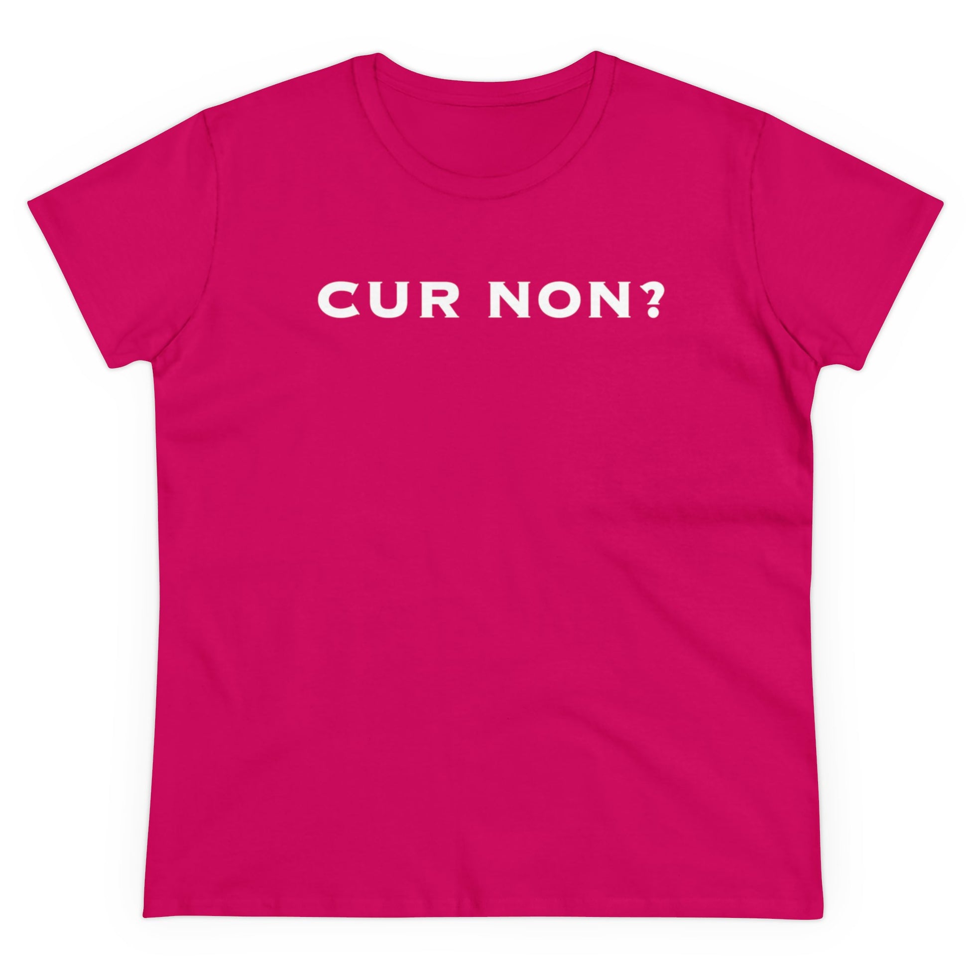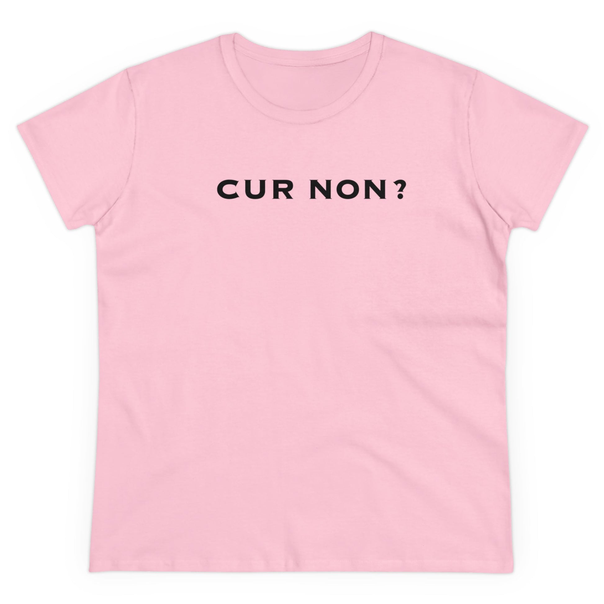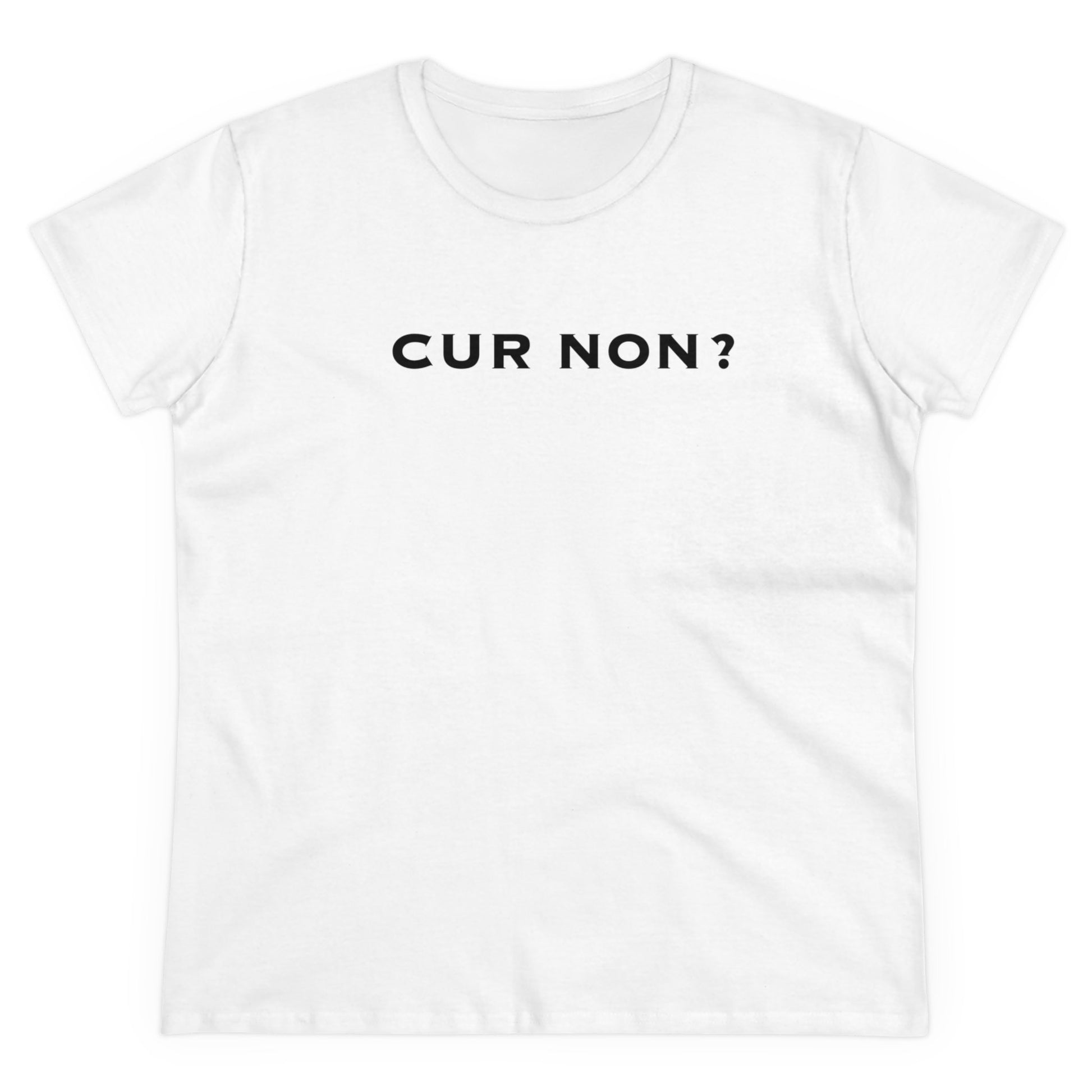 Cur Non means Why Not! This is Lafayette's family motto. Nothing is better than Lafayette's motto on a soft, light cotton, quality t-shirt in your wardrobe. This comfy, contoured 100% cotton tee offers a semi-fitted silhouette and is pre-shrunk to ensure it stays a staple for longer. It features cap sleeves and a taped neck and shoulders. Get yours today. Why not?