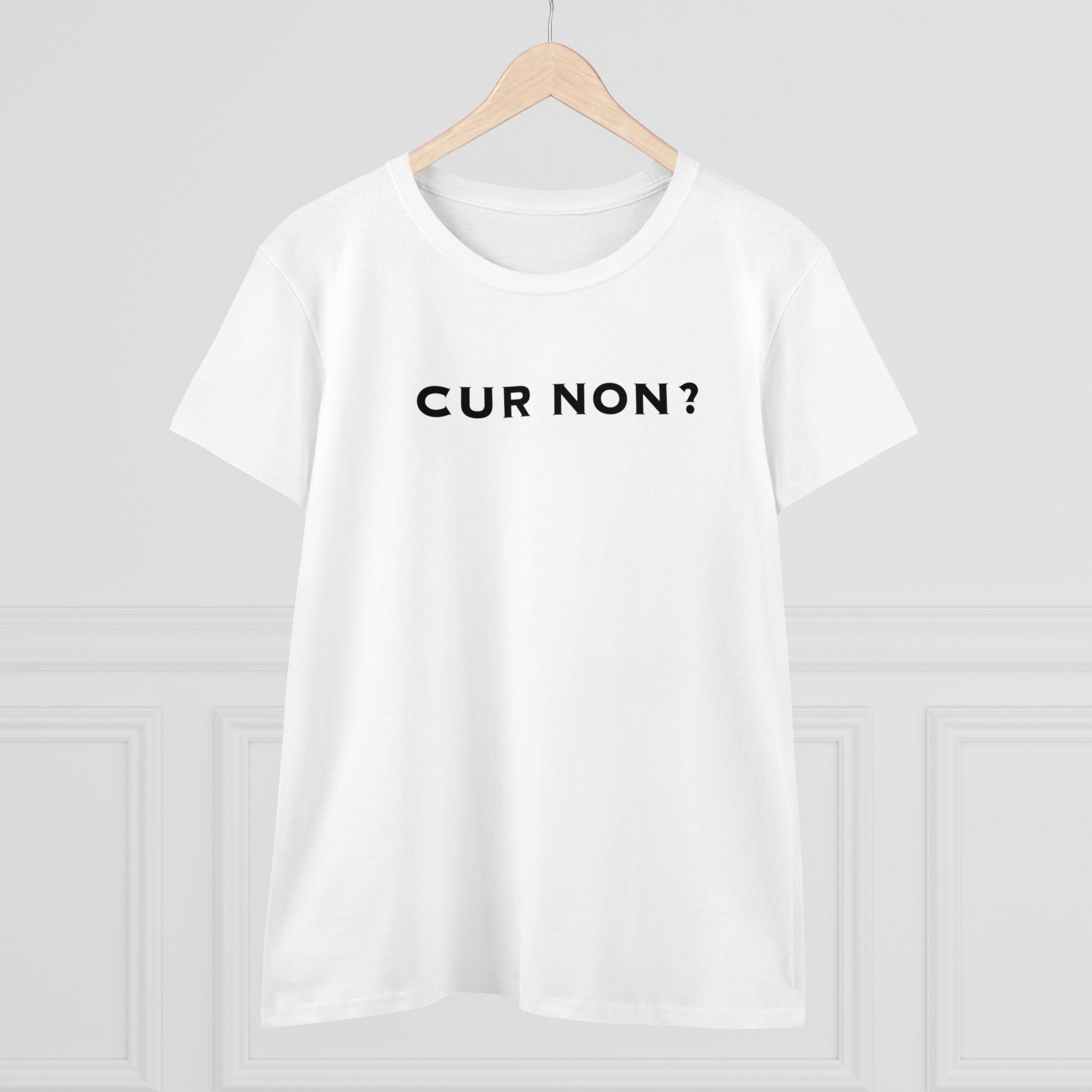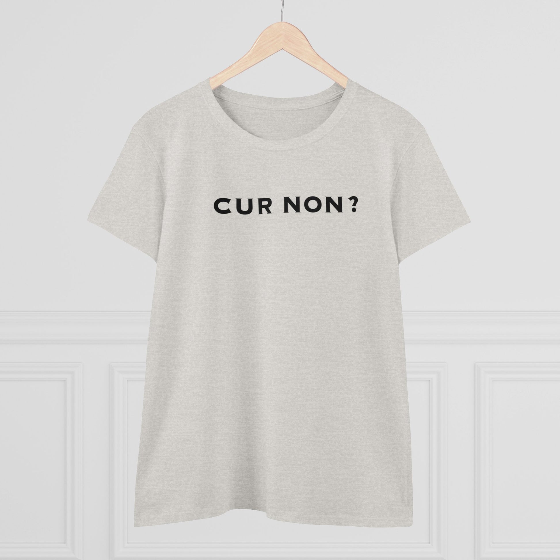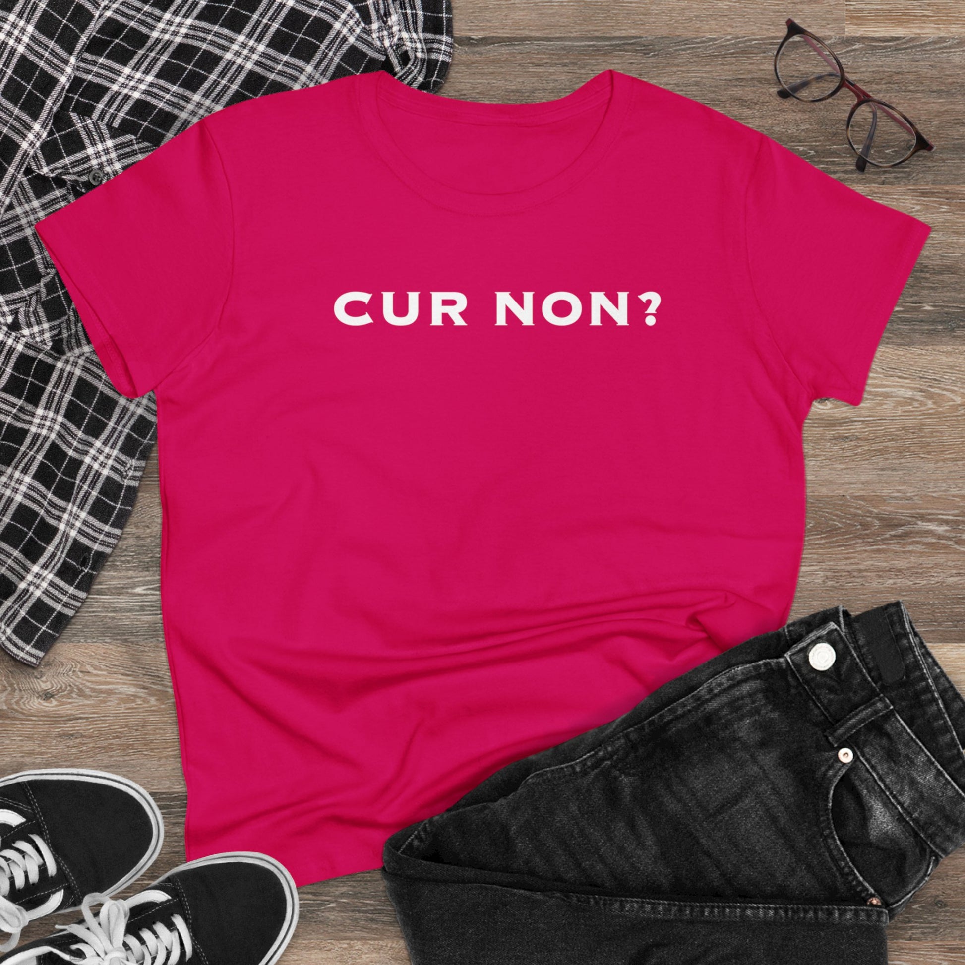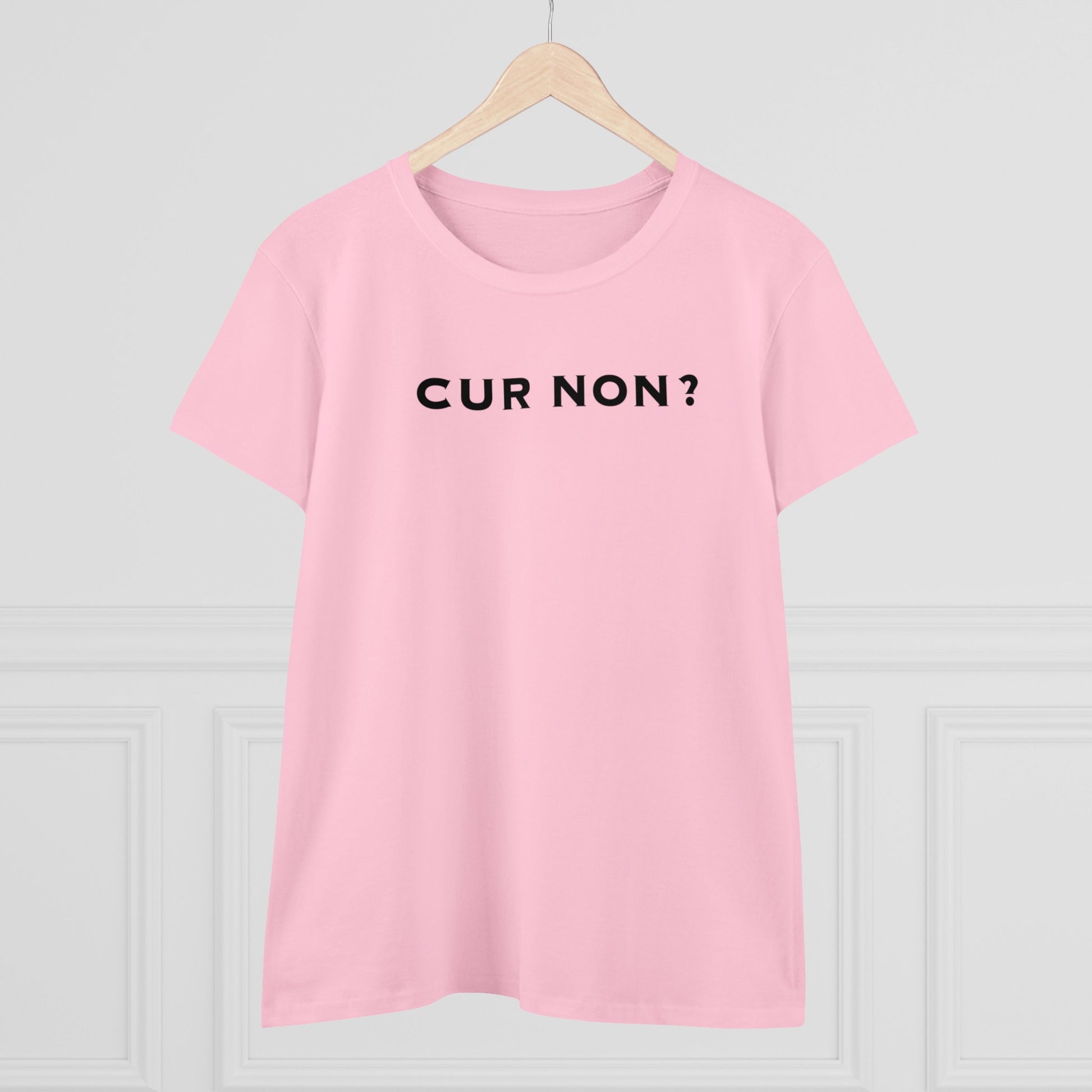 Cur Non means Why Not! This is Lafayette's family motto. Nothing is better than Lafayette's motto on a soft, light cotton, quality t-shirt in your wardrobe. This comfy, contoured 100% cotton tee offers a semi-fitted silhouette and is pre-shrunk to ensure it stays a staple for longer. It features cap sleeves and a taped neck and shoulders. Get yours today. Why not?