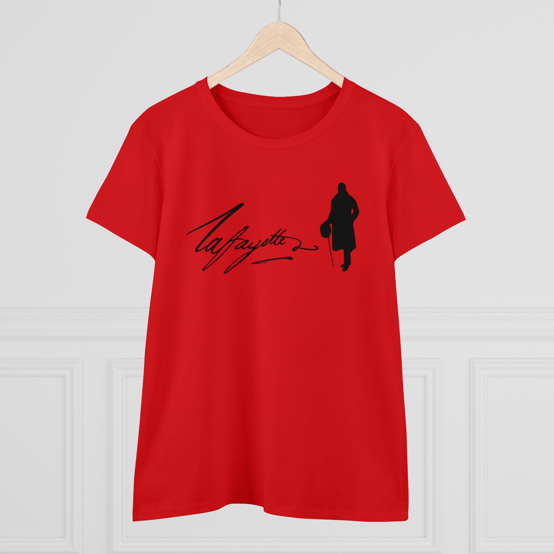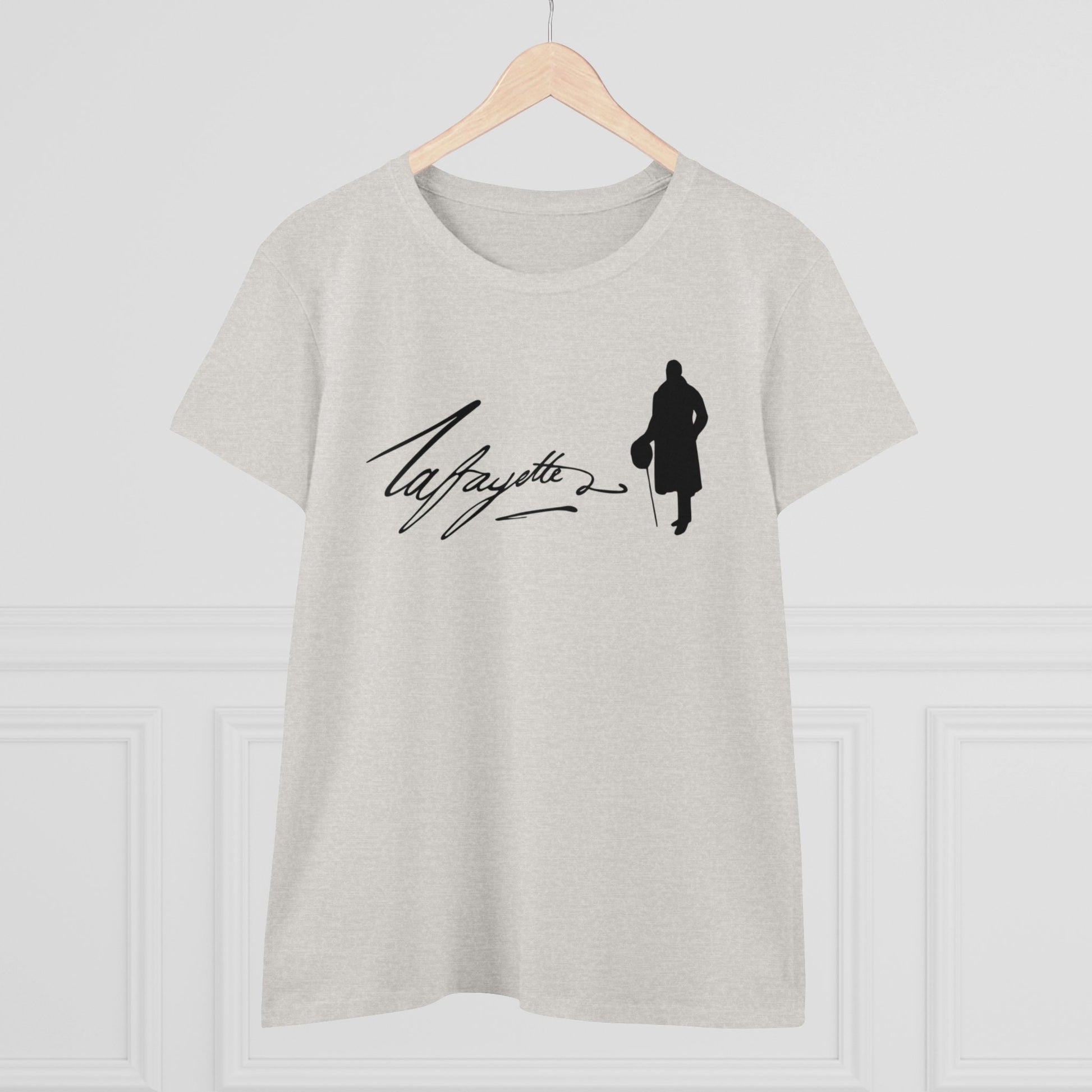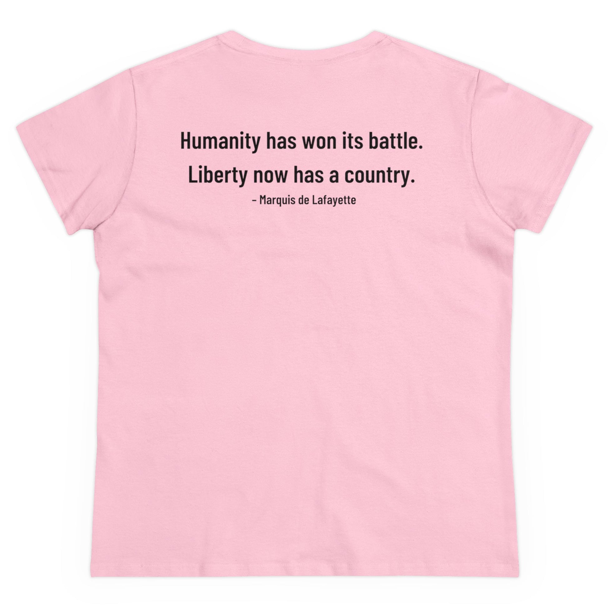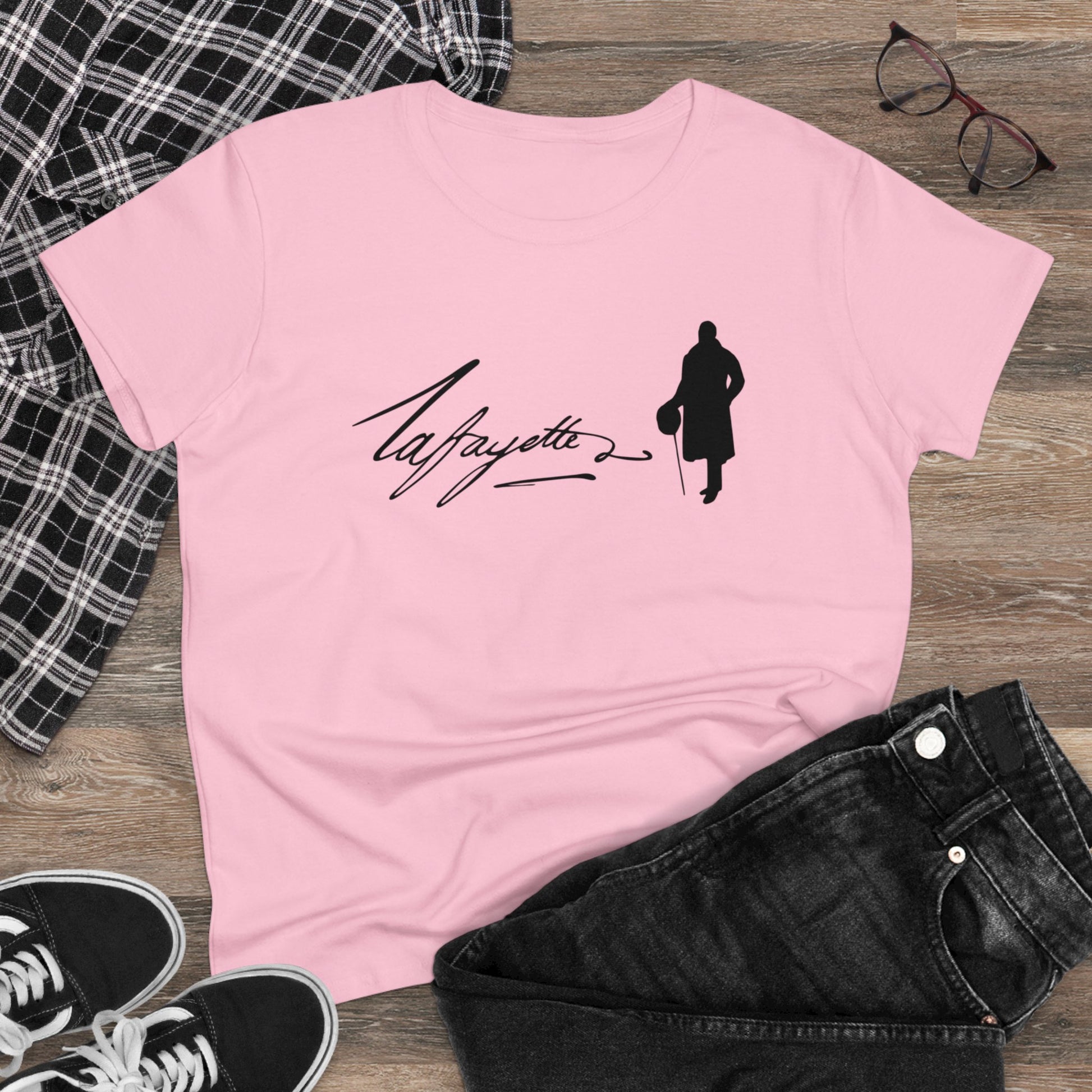 Two-sided Lafayette Women's Tee Silhouette Signature Cap Sleeves Midweight Cotton - Slightly Fitted - Quote on Back, Bicentennial, Marquis