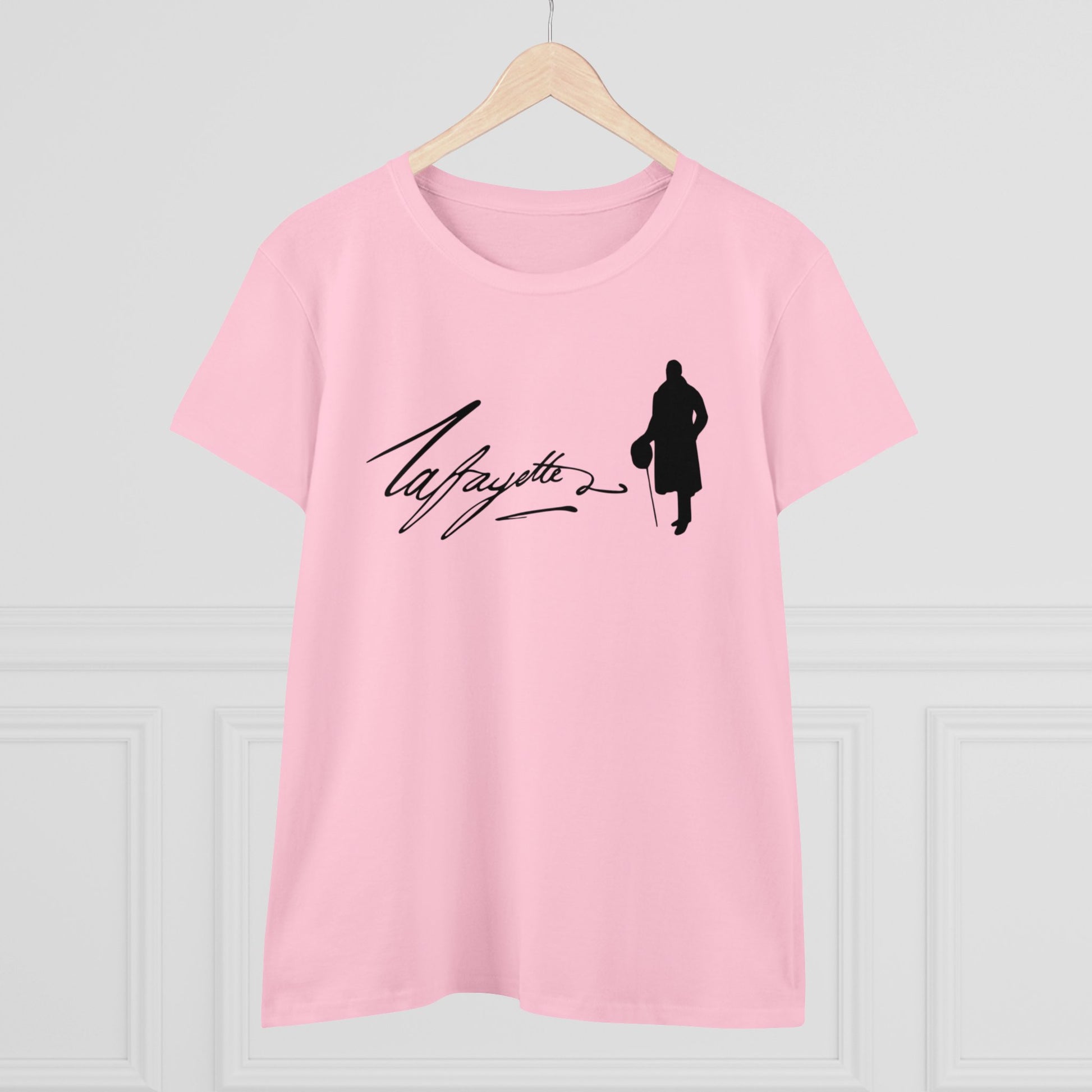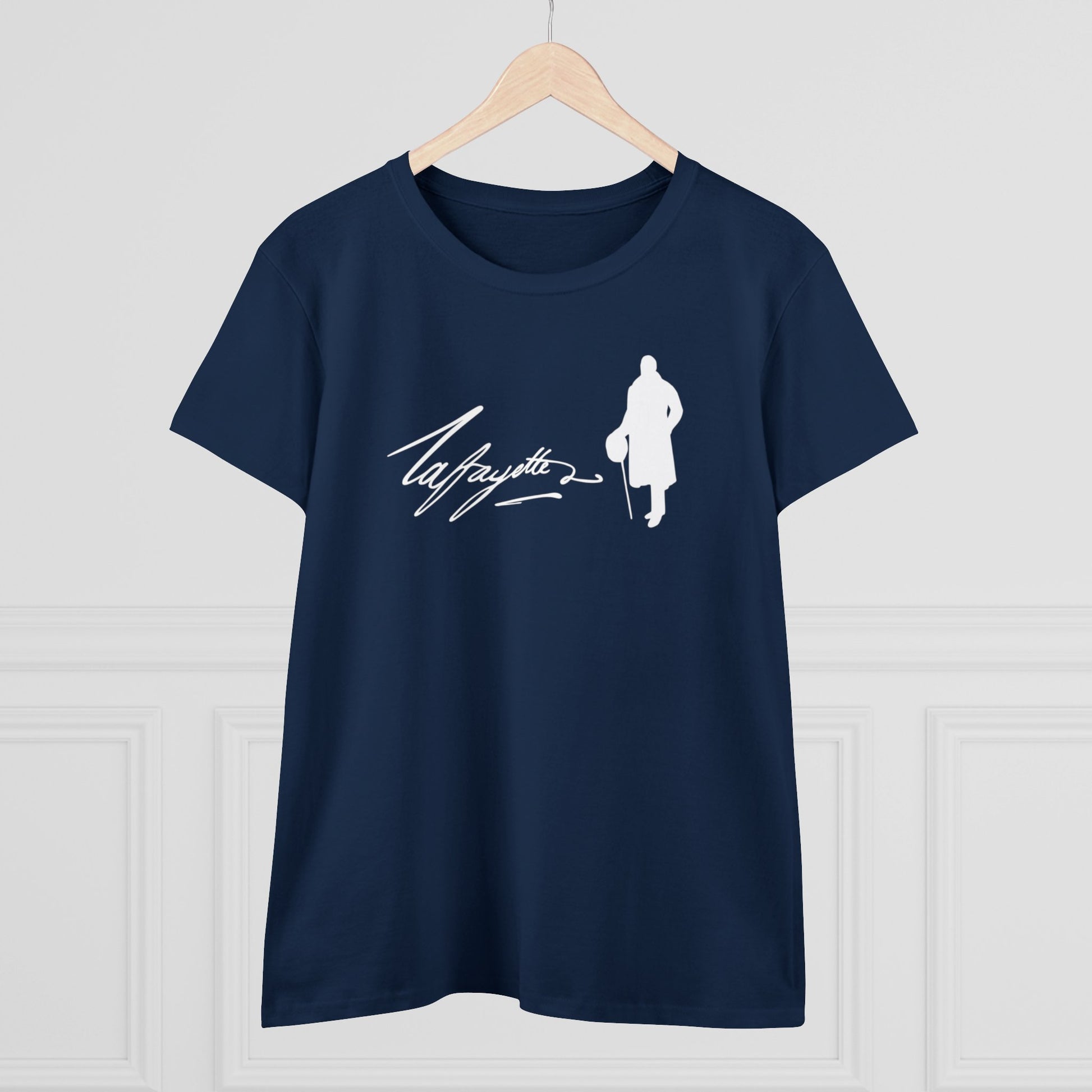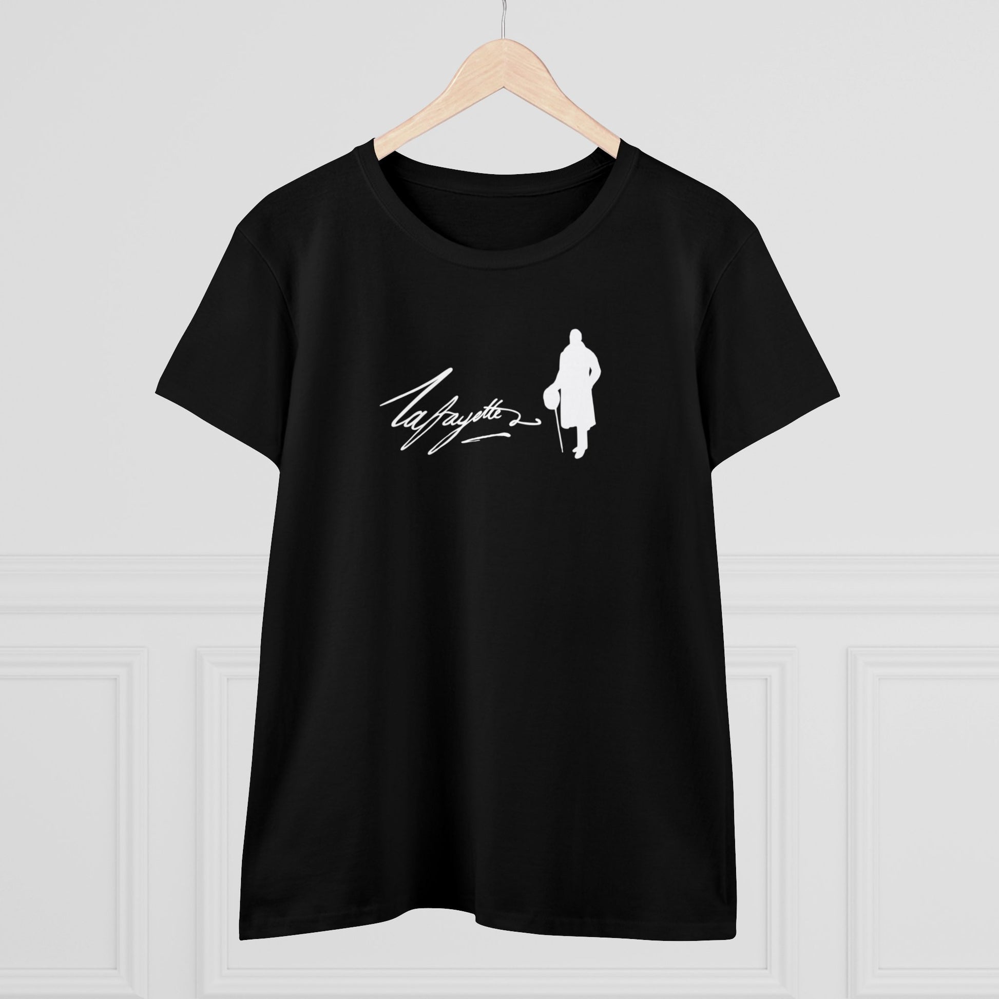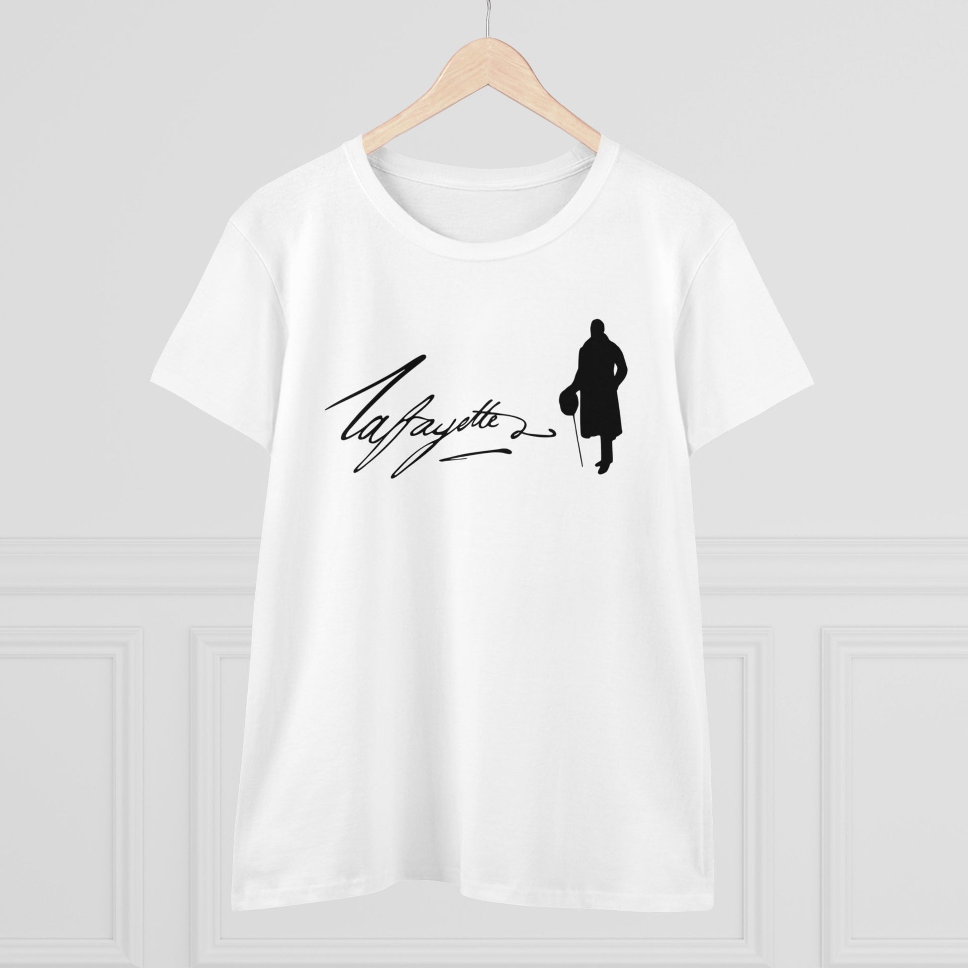 Two-sided Lafayette Women's Tee Silhouette Signature Cap Sleeves Midweight Cotton - Slightly Fitted - Quote on Back, Bicentennial, Marquis