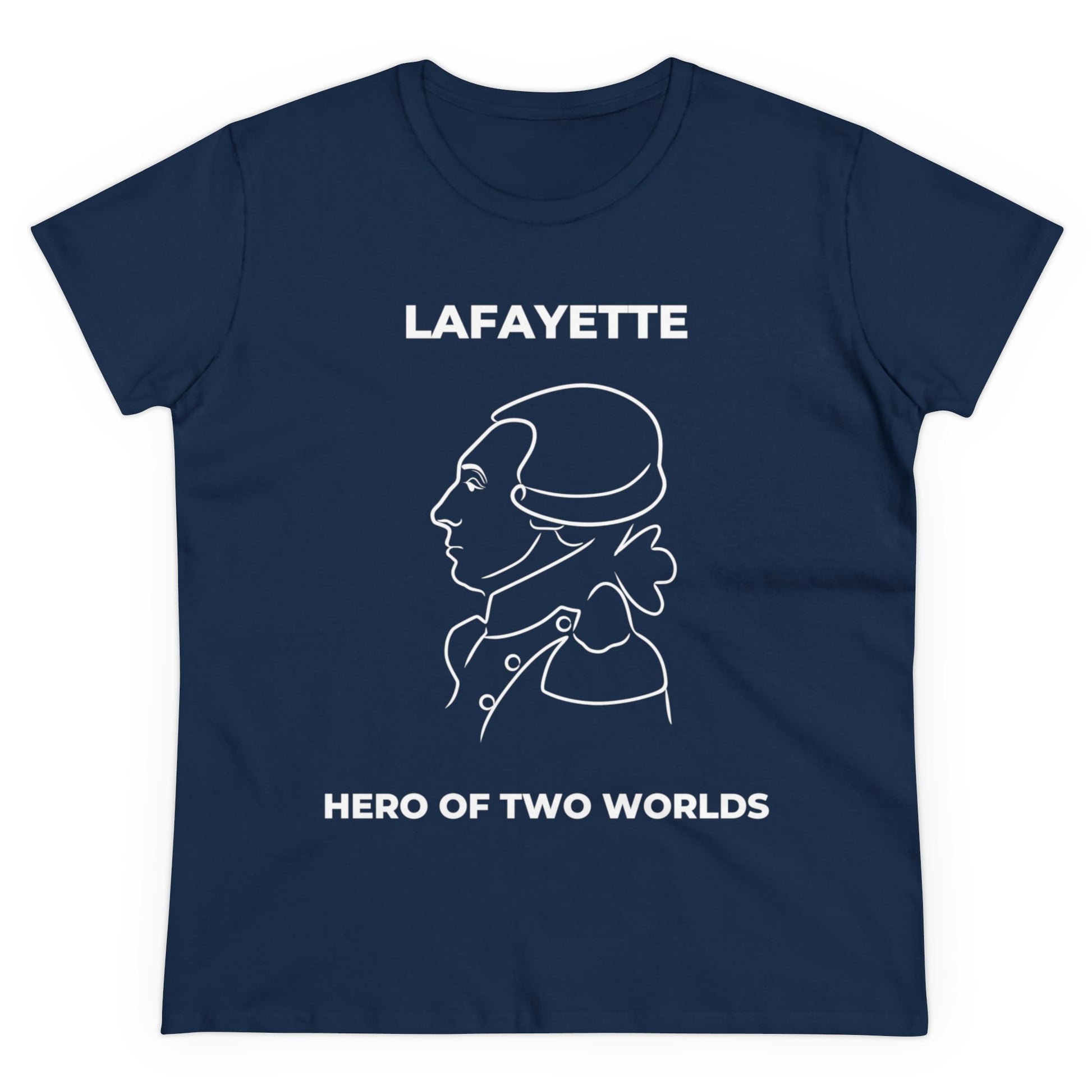 Lafayette Women's Tee Cap Sleeves Midweight Cotton - Slightly Fitted - Line Portrait, History, History Teacher, Bicentennial, Marquis