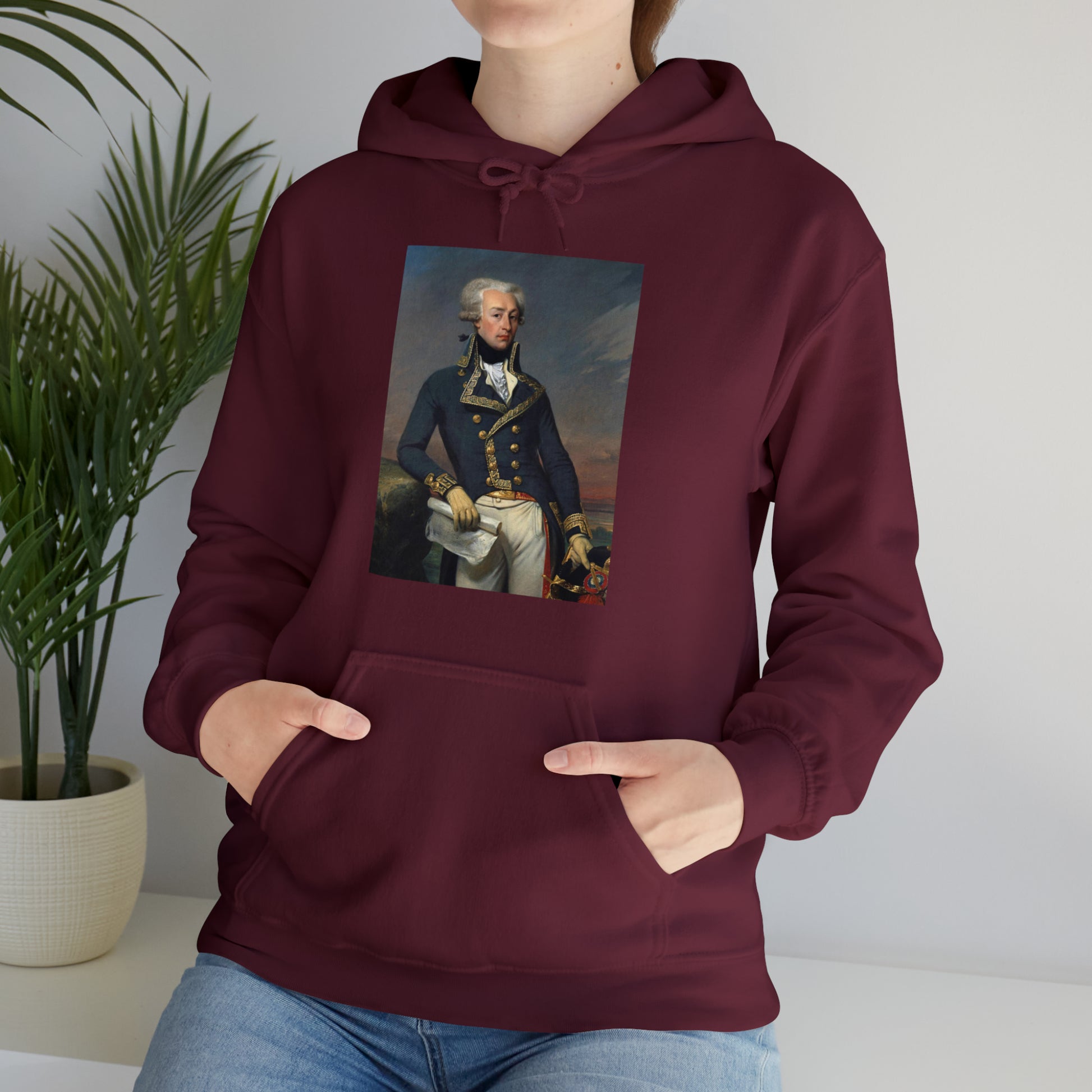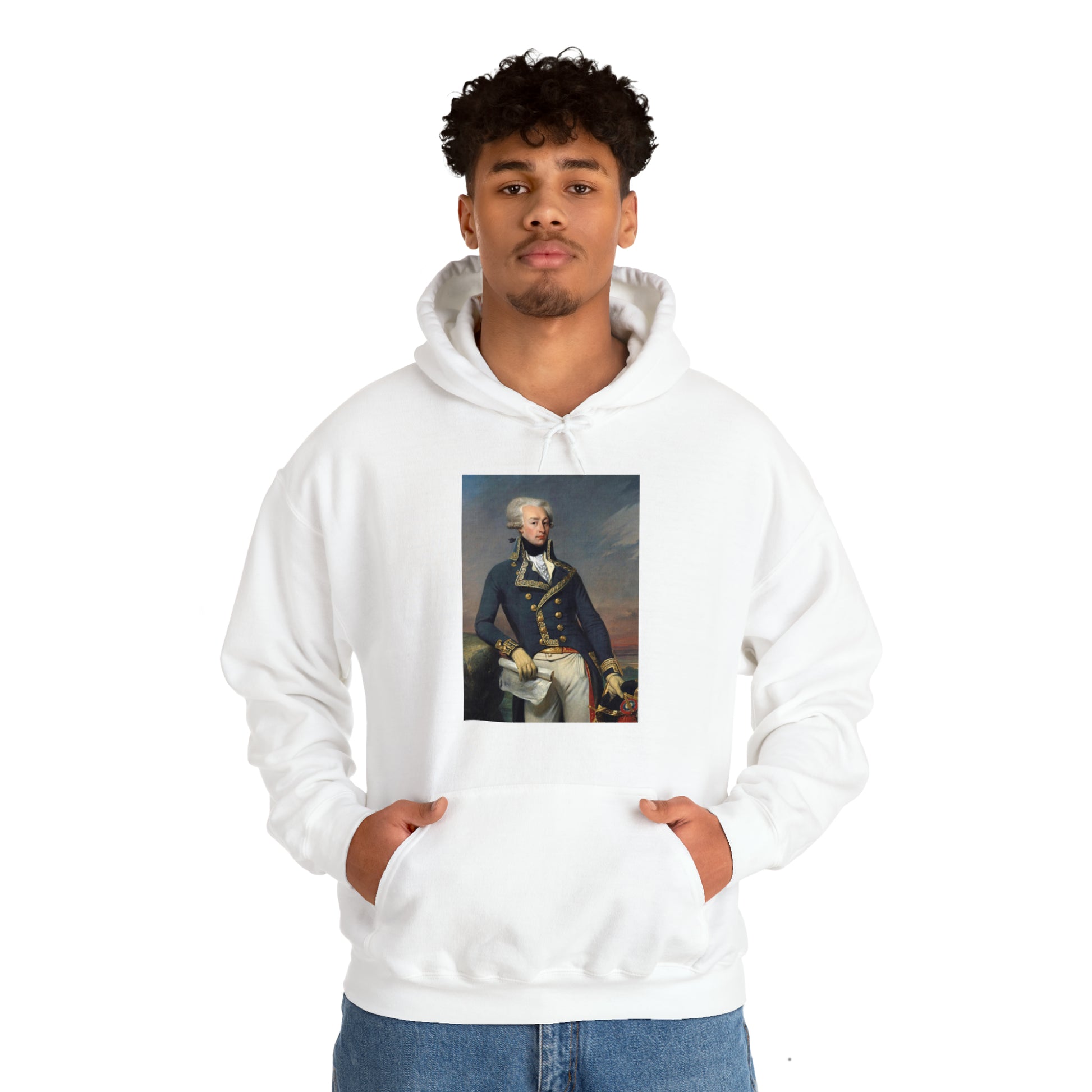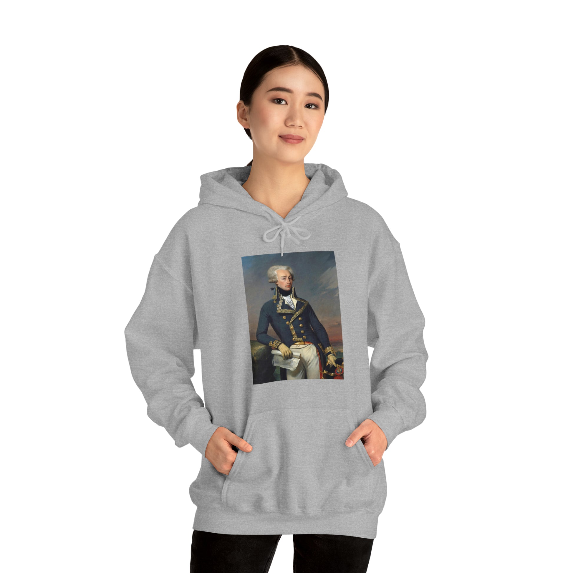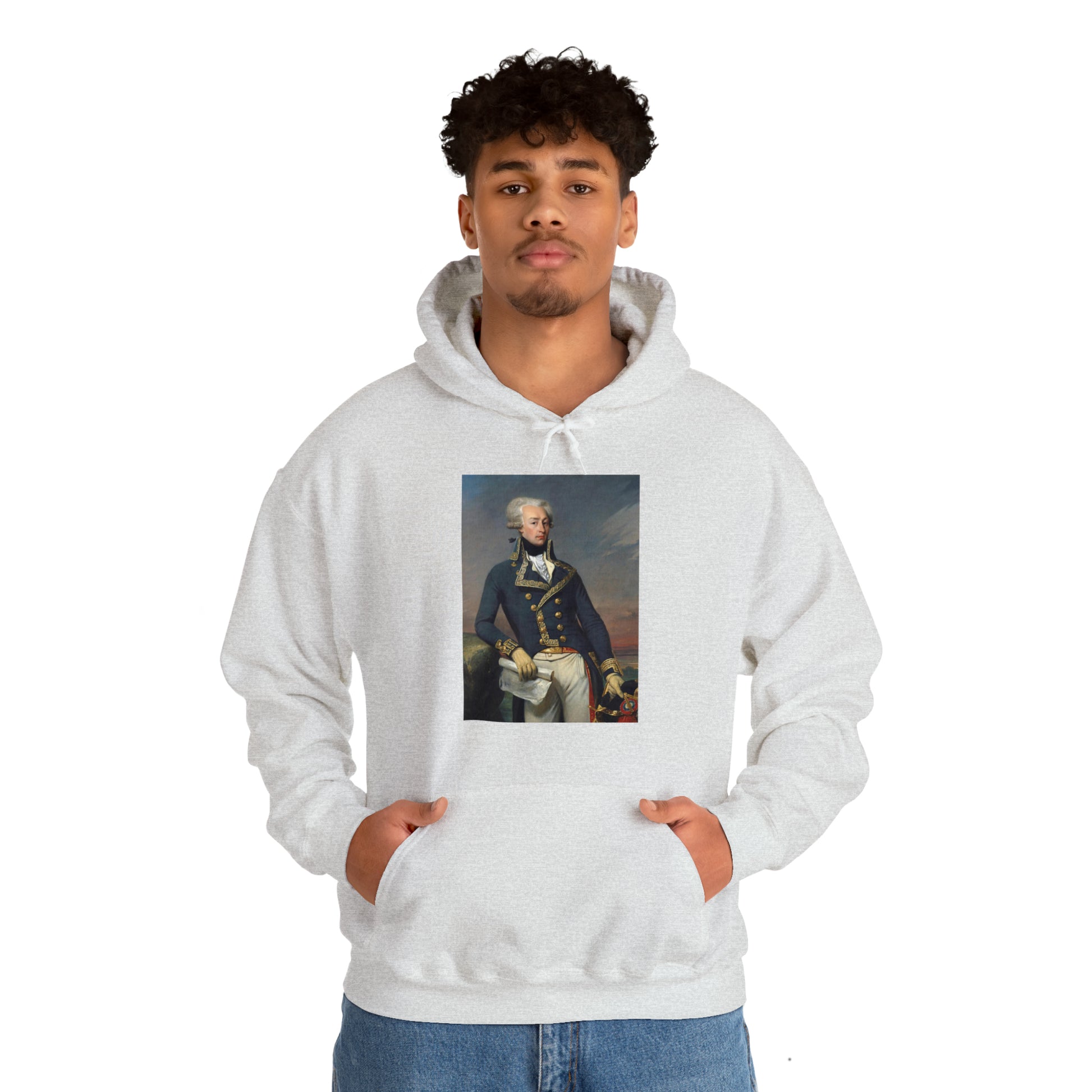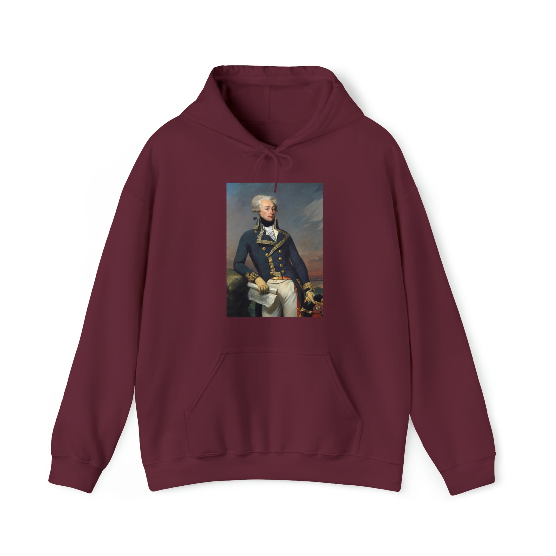 Now you can wear Lafayette wherever you go! This unisex heavy blend hooded sweatshirt is fun and good looking. It includes a classic portrait of Lafayette - everyone's favorite.