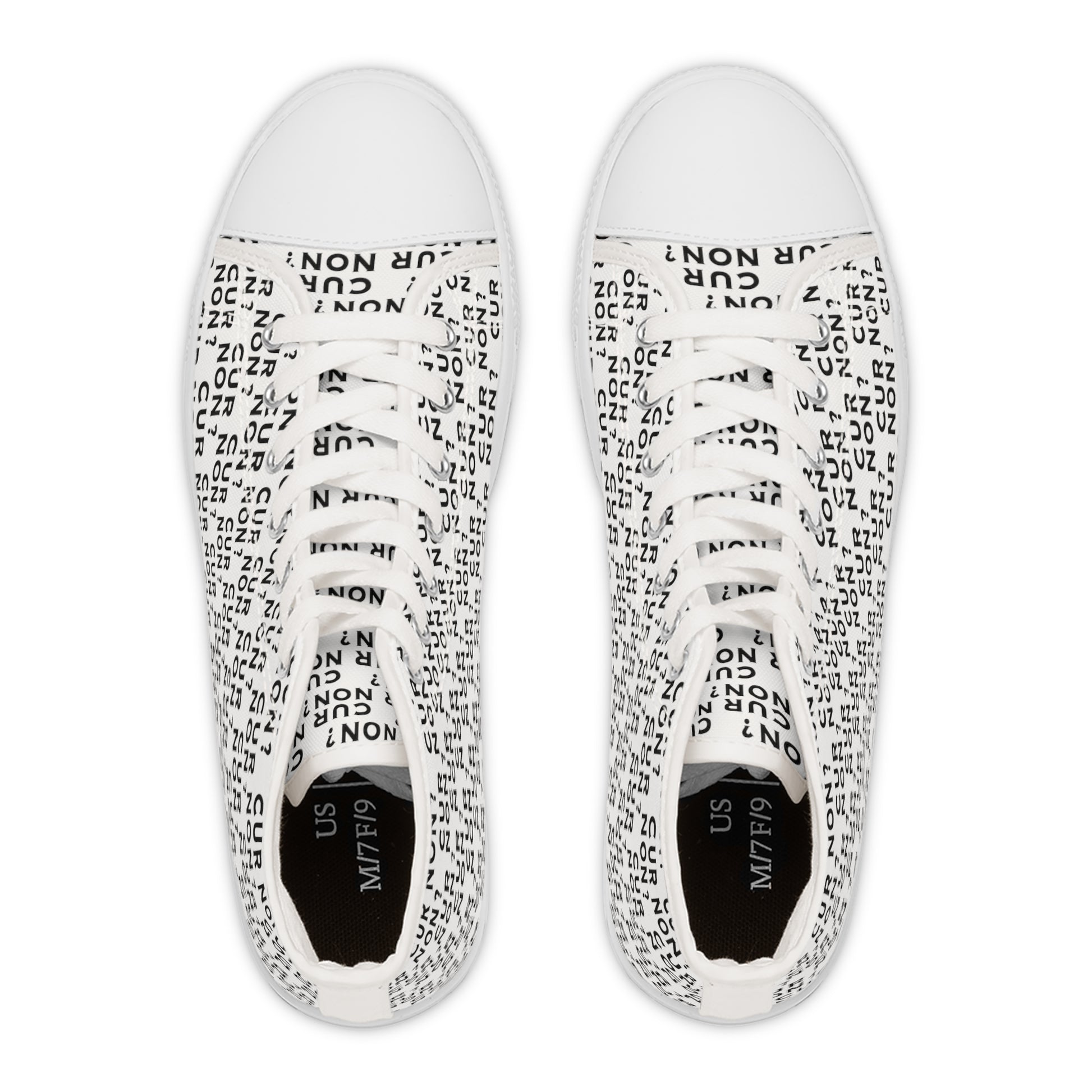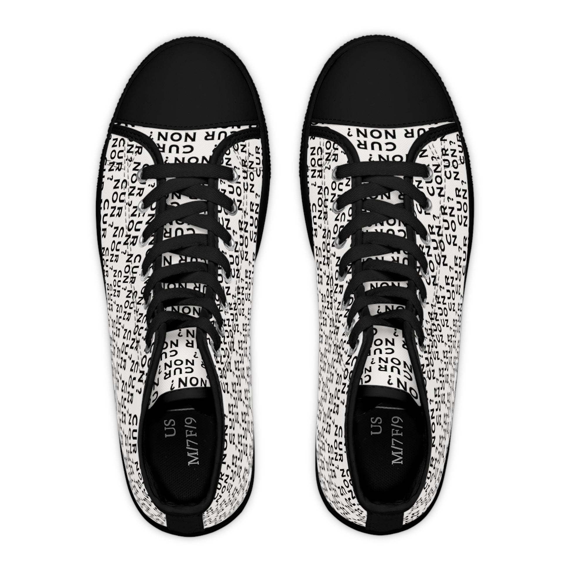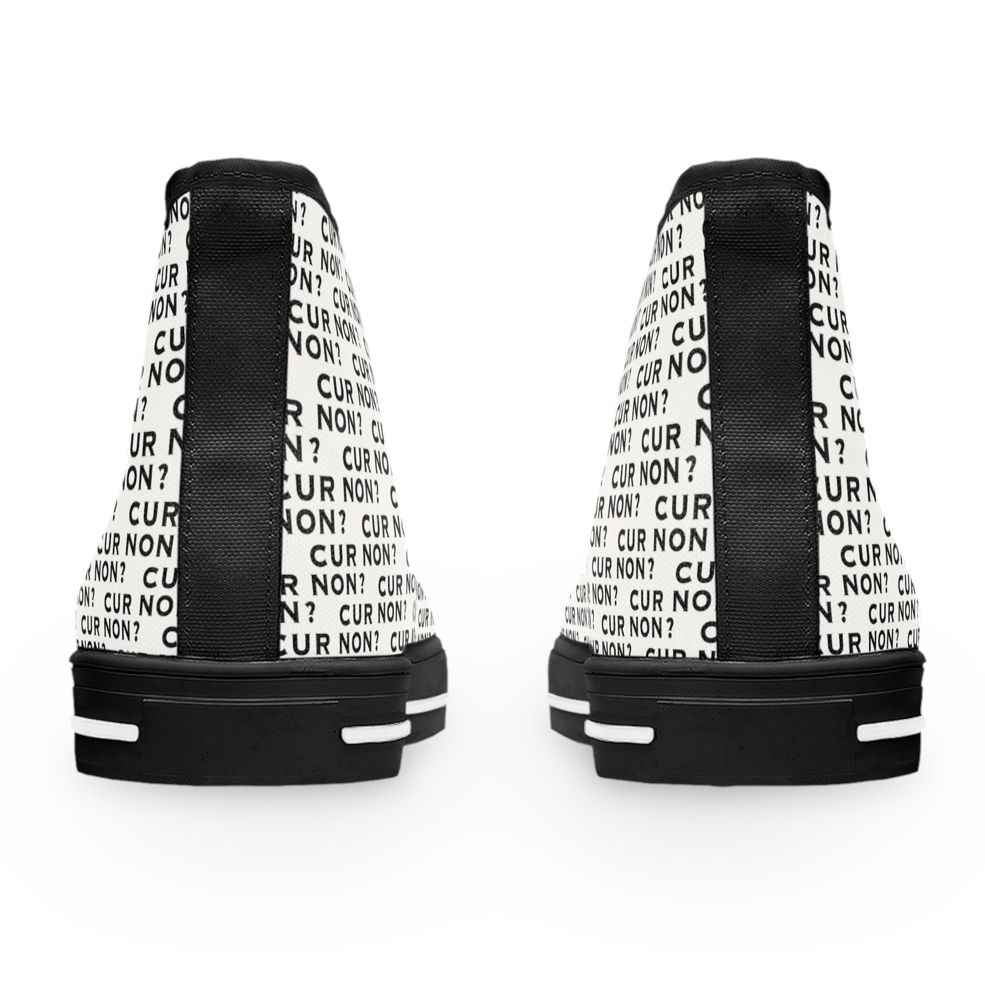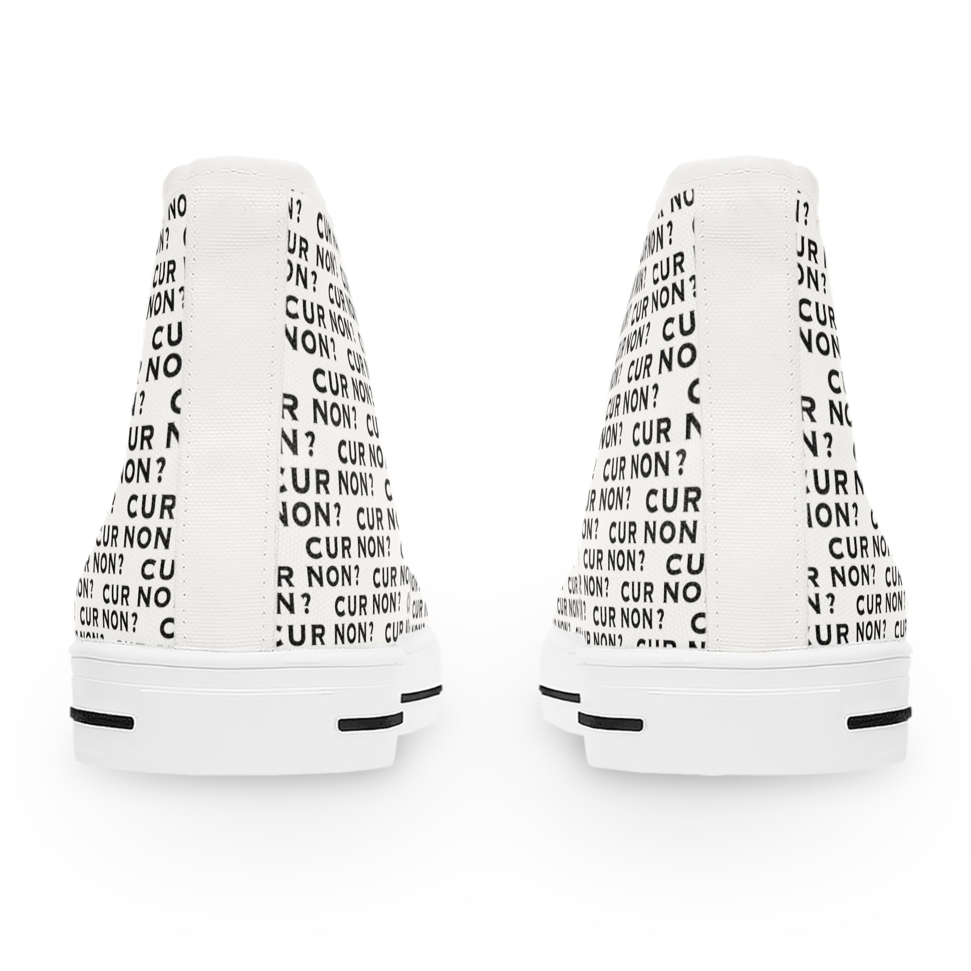 ONE-OF-A-KIND! Well, actually a PAIR! These unique high top sneakers are sure to be a show stopper when you arrive in your event like a cool modern history buff! The PERFECT conversation starter! Designed with the Marquis de Lafayette's motto - Cur non which means why not, these sneakers give a wink to history while jazzing up your outfit! Made with breathable polyester canvas and featuring hi-poly deodorant memory foam insoles, these women's high top sneakers bear all the marks of an awesome shoe. Choose between black or white sole and laces, and enjoy the silver metal eyelets along with the lace-up closure.